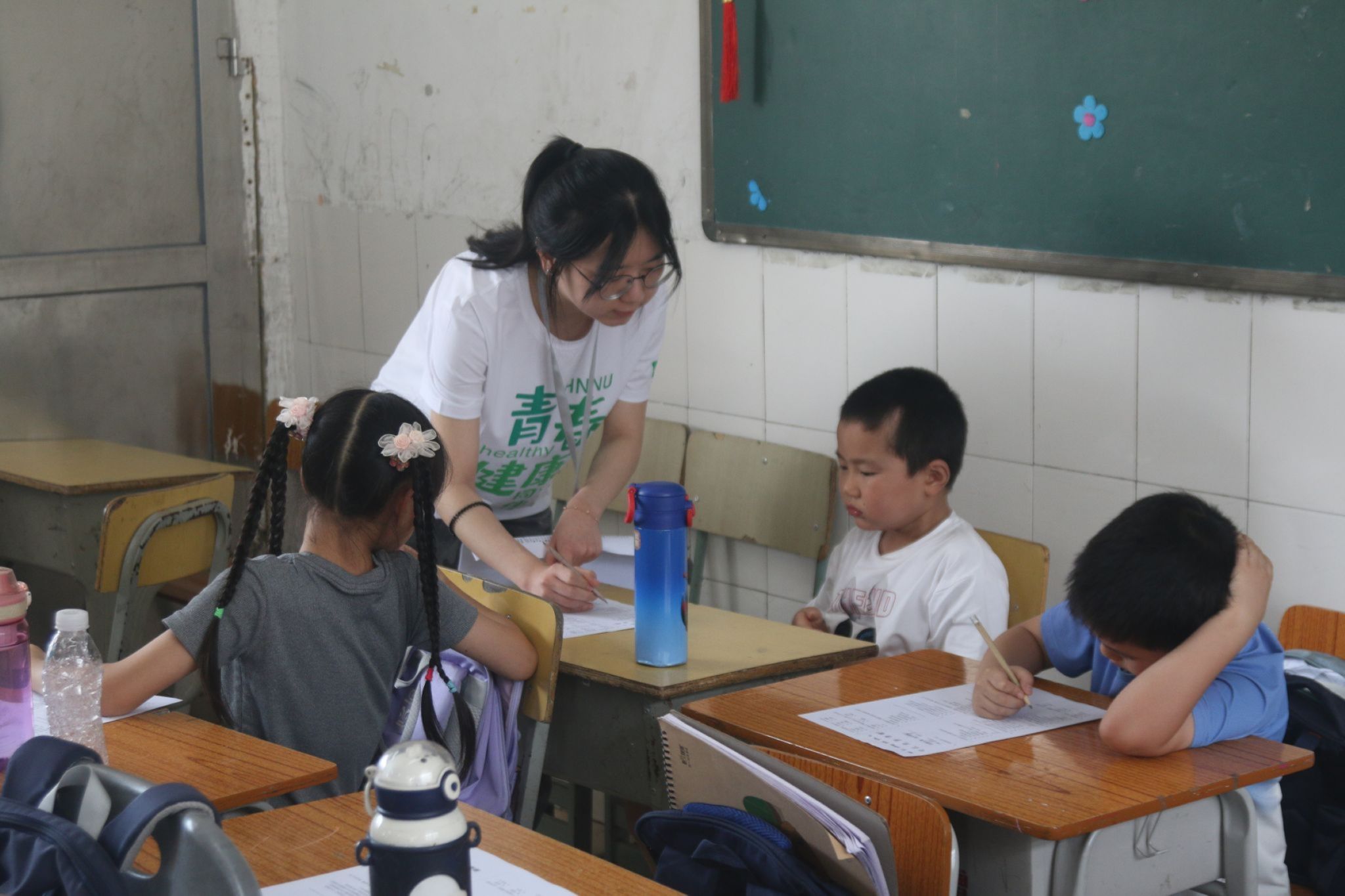 在“安全伴我行,快乐过暑假”主题培训课上,实践团成员播放卡通短片,引出暑期安全的主题,并引导同学们围绕防溺水、防拐骗等安全问题进行讨论。此外,实践团成员传授同学们采用“儿歌+口诀”记忆法,搭配简单手势助记。针对留守儿童独自在家的情况,实践团成员还讲解了“不给陌生人开门”“遇到停电不慌张”等实用技巧。