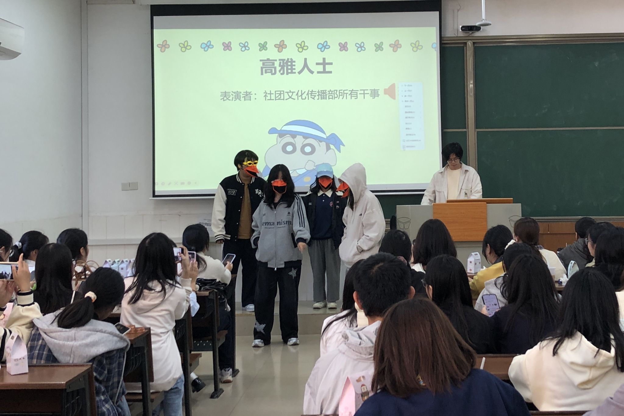 会议伊始,贾文添就此次见面会内容进行简要介绍,并对学社管新成员的加入表示热烈欢迎。各部门及社团理事与干事们在贾文添带领下,依次进行自我介绍,以加深相互了解。见面会设置了表演环节和游戏环节,营造了轻松愉快的氛围,活跃了现场气氛,展现了学社管成员们的才艺和蓬勃朝气。随后,贾文添、周可盈分别上台发言,对此次百团大战及见面会作出总结。会议尾声,成员们合影留念并由贾文添送上男生节祝福。