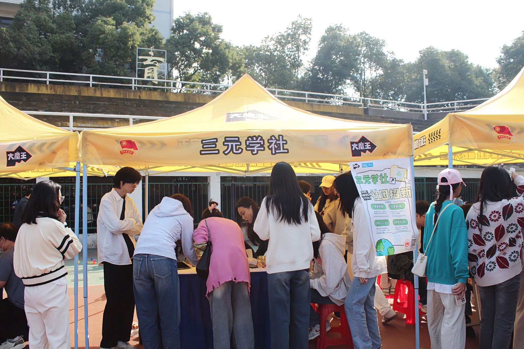 三元学社以“人与人、人与自然、人与社会”为宗旨,致力于推动环保与公益事业。此次招新中,社团设置了绕口令、正话反说、emoji猜猜猜等小游戏,寓教于乐,吸引了不少同学加入。