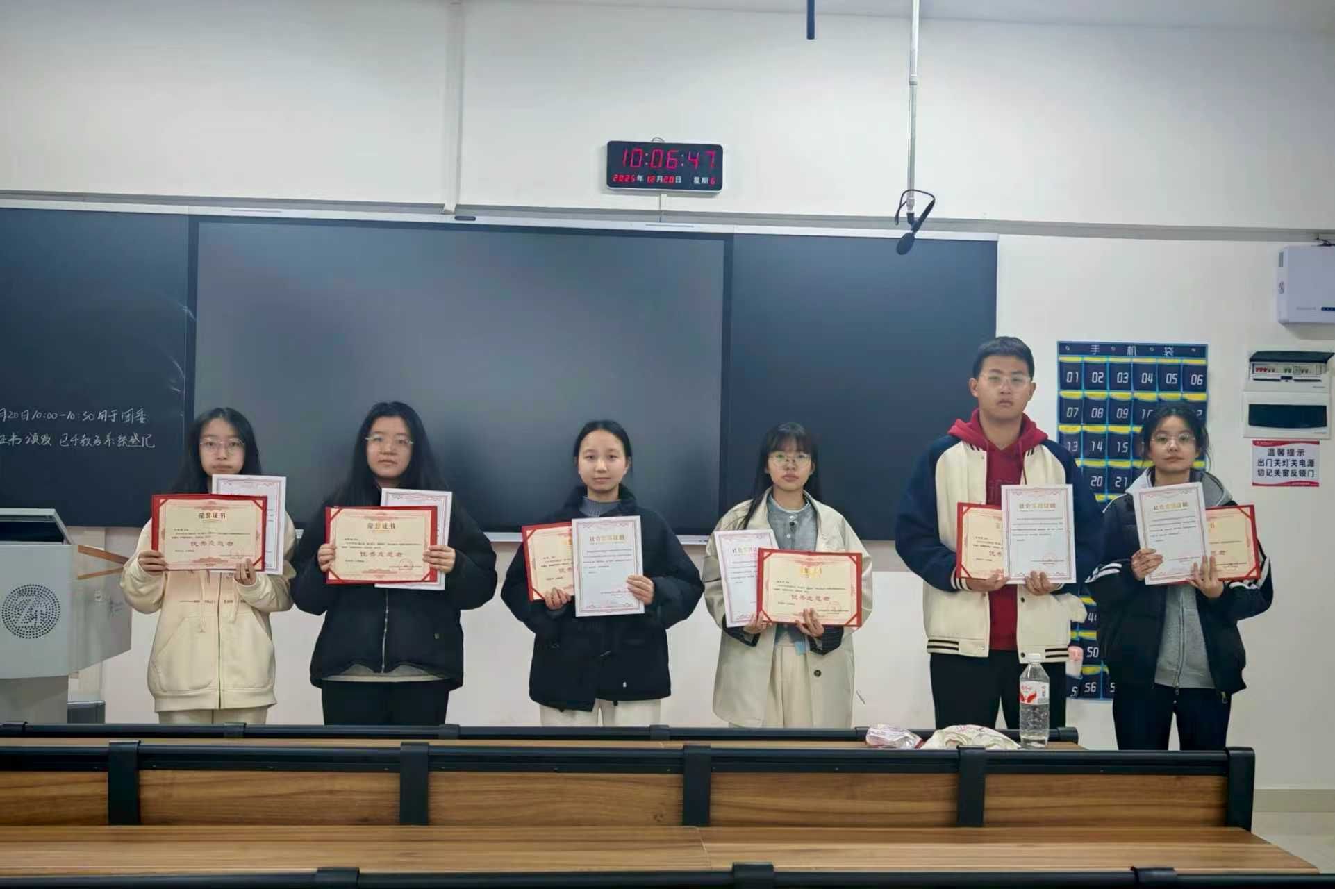 随后的表彰环节,活动主办方为“五一商圈,红色之家”优秀志愿者颁发荣誉证书。此志愿活动自9月14日启动以来,高校志愿者们扎根志愿服务站,以轮班值守的方式,全天累计服务超6小时,在志愿服务站为户外劳动者提供饮水、充电、休息等暖心服务,同时为商圈游客提供路线指引、应急帮助等便民服务,至12月15日活动阶段性收官,累计服务时长超600小时,累计服务各类群体超1800人次,成为商圈服务民生、凝聚合力的重要实践。优秀志愿者代表侯芷澜在发言中说道:“在社区实践的这段经历,让我们真切感受到了基层服务的意义,未来我们会继续用实际行动践行志愿精神。”
