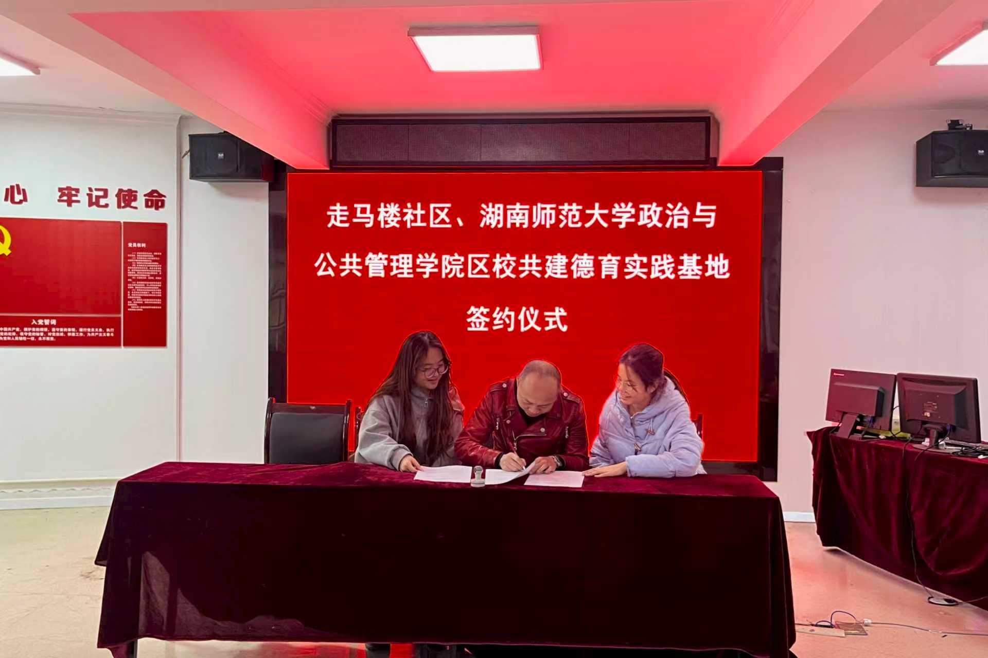 签约仪式现场,双方代表共同签署《社校共建德育实践基地合作协议》,并为基地揭牌。走马楼社区党委副书记王曼玲表示,此次共建是整合校社资源、推进基层治理现代化的重要举措,社区将以德育实践基地为依托,为大学生搭建实践锻炼的广阔平台,同时引入高校智力资源,助力社区红色教育、便民服务等工作提质升级。