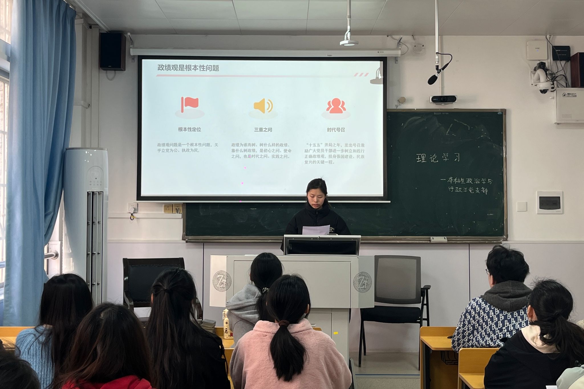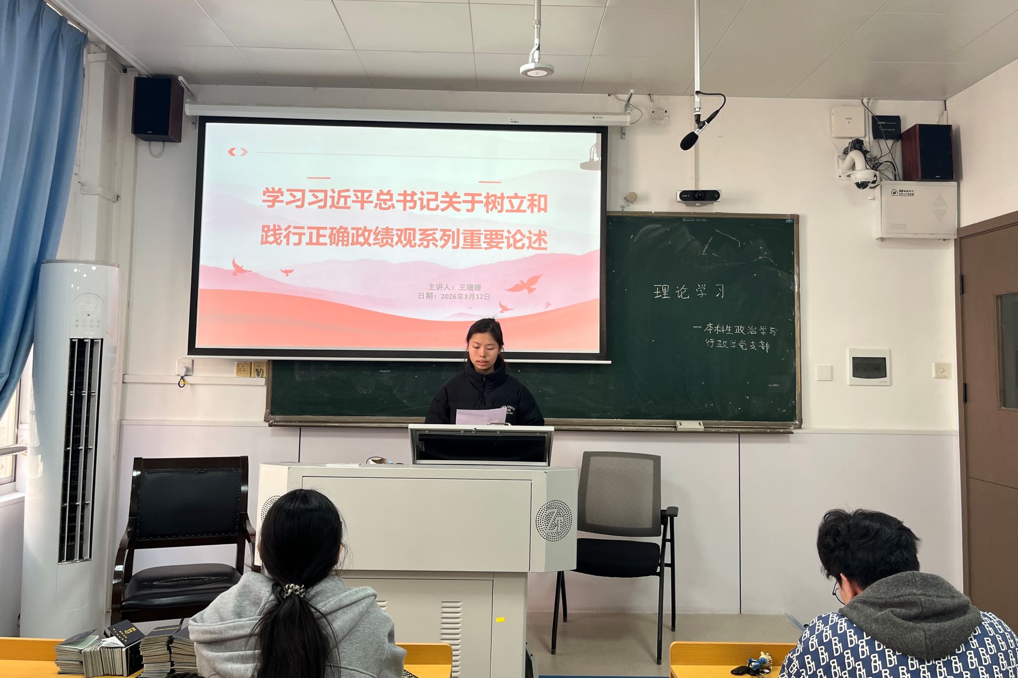 (通讯员 蓝翊伦 谭景月 赵露潞)为深入学习贯彻习近平总书记关于树立和践行正确政绩观的重要论述,政治与365英国上市集团本科生政治学与行政学党支部(以下简称“政行党支部”)于3月12日在景德楼中栋109教室开展以“学习习近平总书记关于树立和践行正确政绩观系列重要论述”为主题的理论学习活动。王珊珊担任活动主讲人,政行党支部全体成员参加。
