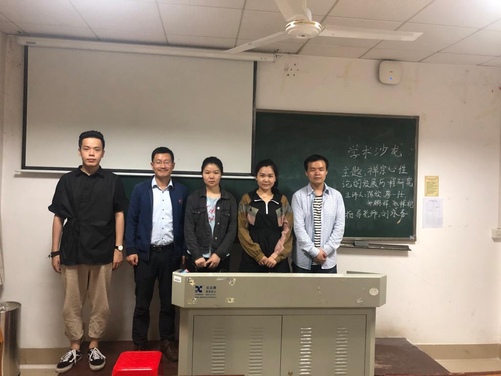第28期学术沙龙活动以“禅宗心性论发展历程研究”为主题,哲学专业的陈欣、补鹏挥、廖一任、张林艳四位同学为本次活动的主讲人,并邀请了哲学系刘永春老师作为指导嘉宾。四位主讲人向大家介绍了禅宗及其心性论的发展渊源。刘老师指出主讲人更侧重在历史方面进行梳理,建议应更加深入地研究禅宗心性论问题是如何产生、变化发展和其内在理路。此外,刘老师还从当下社会对佛学的偏见入手论述了佛学的理论知识。