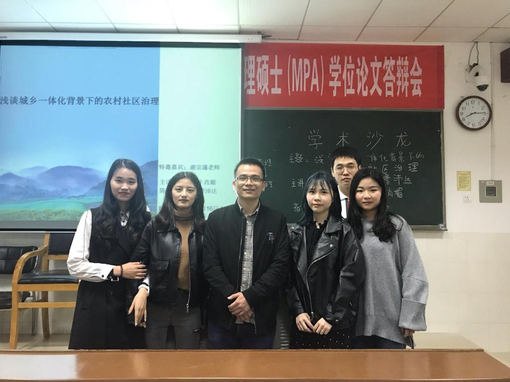 活动最后,谢宗藩老师与同学们进行了合影,18级公共管理专业全体硕士研究生参与了本次学术沙龙。