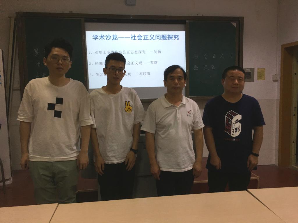 第33期学术沙龙活动以“社会正义问题探究”为主题,来自哲学专业学生的吴畅、罗曙、邓联凯三位同学为本次活动的主讲人,并邀请了彭定光老师作为指导嘉宾。三位主讲人针对亚里士多德社会公正思想、哈耶克自由主义社会正义观、罗尔斯社会正义观等问题进行了分析。彭老师对三位主讲人的发言表示肯定,并详细地介绍了社会正义观的相关知识内容。彭老师指出本次学术沙龙的内容可以划分为两个部分:整体正义和个体正义。彭老师认为在探讨社会正义问题这一主题时,主讲人应该从理论来源、类型、存在的问题、问题成因以及对现代社会的影响性等方面进行分析。彭老师建议在选题方面,主讲人员应选取具有价值性、意义性的问题,产生积极的思考并由此提炼出自己的观点。