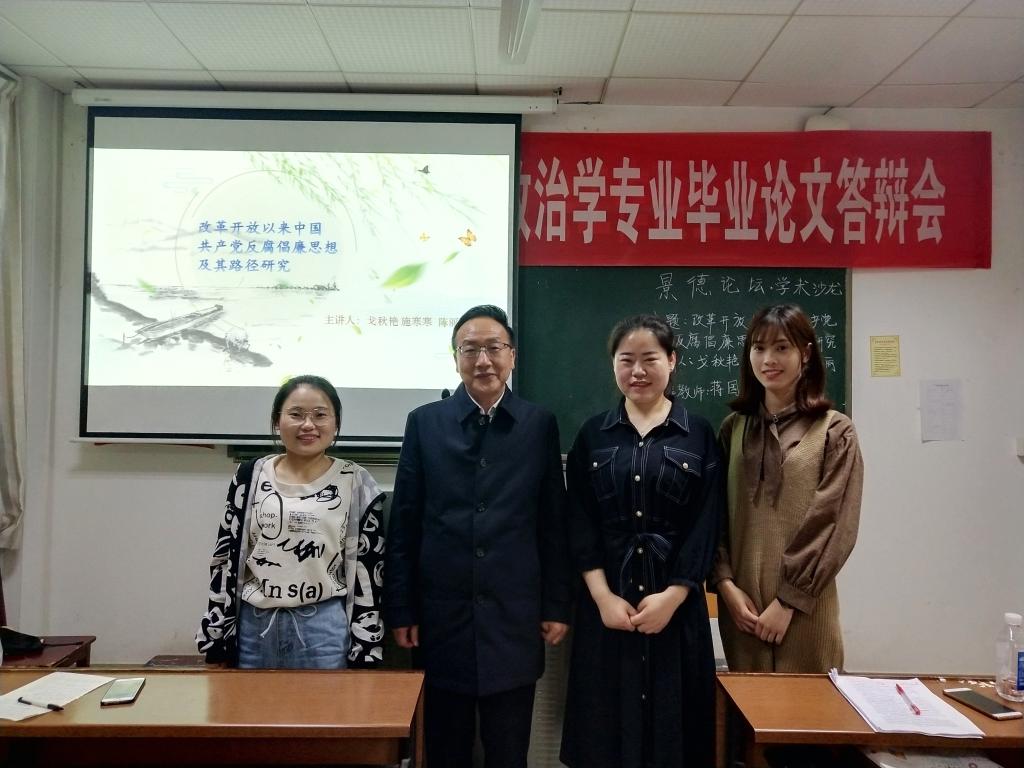 (通讯员:戈秋艳 陈雅倩)2019年4月17日晚19:00,我院2018级政治学专业学生于公管院309教室举办了第15期“景德论坛·学术沙龙”活动。本次活动以“改革开放以来的中国共产党的反腐倡廉思想及其路径研究”为主题,来自政治学专业的戈秋艳、施寒寒、陈丽丽为主讲人,并邀请了政治学系蒋国海老师为指导嘉宾。
