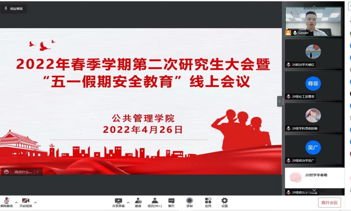 我院召开2022年春季学期第二次研究生大会暨“五一假期安全教育”线上会议