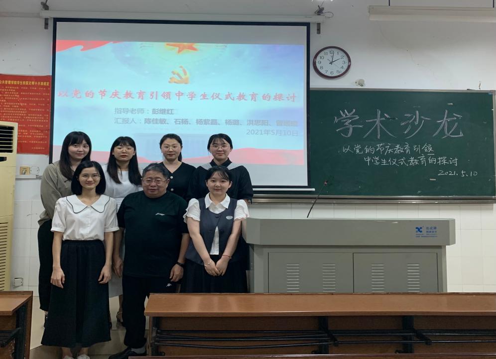 第28期“景德论坛·学术沙龙”活动以“以党的节庆教育引领中学生仪式教育的探讨”为主题,来自2019级学科教学(思政)专业的陈佳敏、石杨、杨紫晶、杨璐、洪思阳、曾暖暖六位同学为本次活动的主讲人,并邀请了彭继红教授前来指导。六位主讲人整体解读了党的节庆教育、中学生的仪式教育等核心概念,并从党的节庆教育对中学生仪式教育的主要表现及政策依据、引领价值、党的节庆教育具备的导向、激励等功能以及实践经验和引领策略五个角度展开具体阐述和分享。彭继红老师认为,在党的百年华诞之际,以党的节庆教育为切入点探讨如何引领中学生日常行为与仪式教育具有具有时代性、前沿性和研究性。同时,彭老师也对活动的不足提出了建议:将原理、理念与思想政治教育融合时应注意创新性和科学性;重点关注党的节庆教育形式,探寻其对中华优秀传统文化、中学生的日常生活与行为方式的影响。