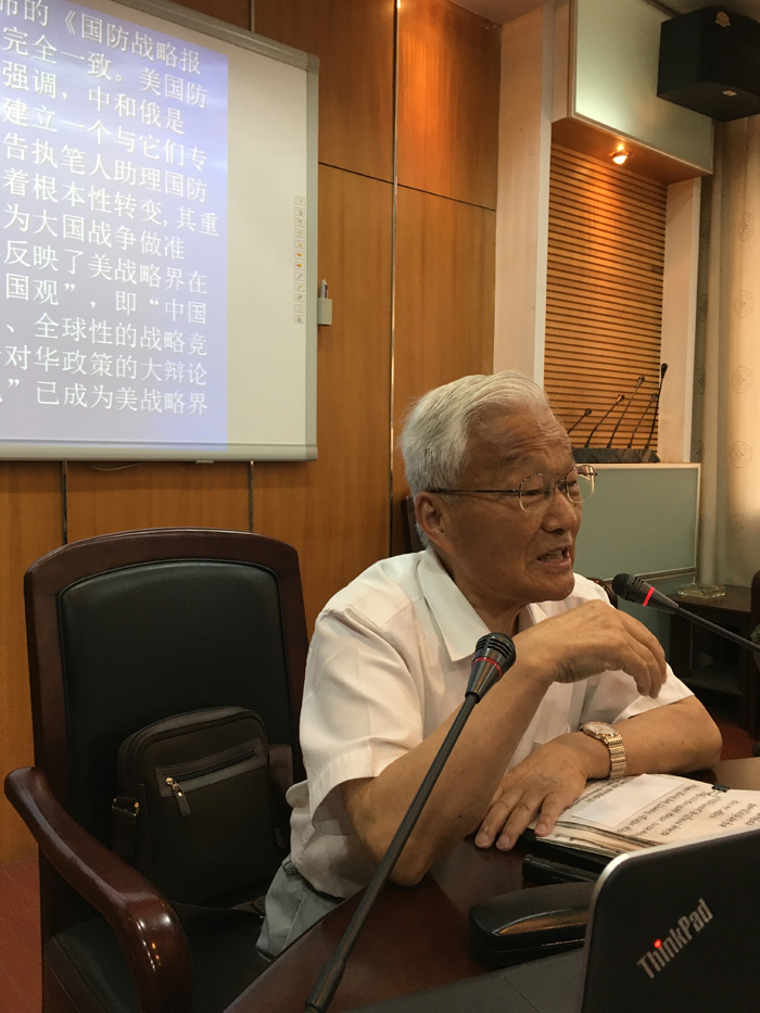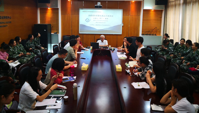 2018年5月27日上午,应我校非洲研究中心的邀请,国际问题资深专家、湘潭大学非洲研究所前所长李广一教授莅临我院讲学,主题为“当前国际形势及热点问题探析”。讲座由非洲研究中心主任陈晓红教授主持,365英国上市集团颜琳博士以及本、硕、博学生60余人聆听了本次讲座。李广一教授从时代特征、大国关系、主要大国内部治理的困境以及中国对世界的贡献四个方面阐述了国际形势及当前共同关注的热点问题,逻辑清晰而又幽默风趣,讲到重点问题更是举一反三、信手拈来,尤其在谈到中国在国际上地位和贡献时,老教授激情澎湃,神采飞扬,深深感染了在场的老师和学生,整整三小时的讲座互动频繁、反响热烈。