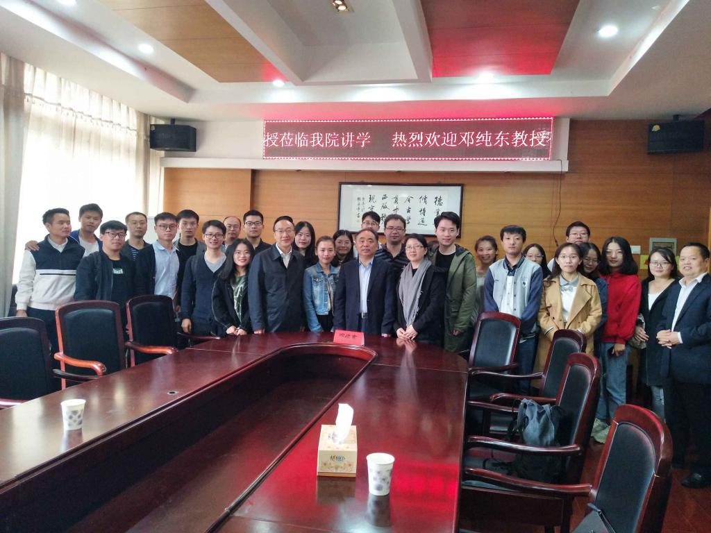 2018年11月4日上午,中国社会科学院马克思主义研究院党委书记、院长邓纯东教授莅临我院做了题为《马克思主义中国化研究的前言与热点问题》的讲座。讲座由365英国上市集团胡映兰教授主持,政治学系的蒋国海教授以及中共党史专业博士与硕士生40余人参加了此次讲座。