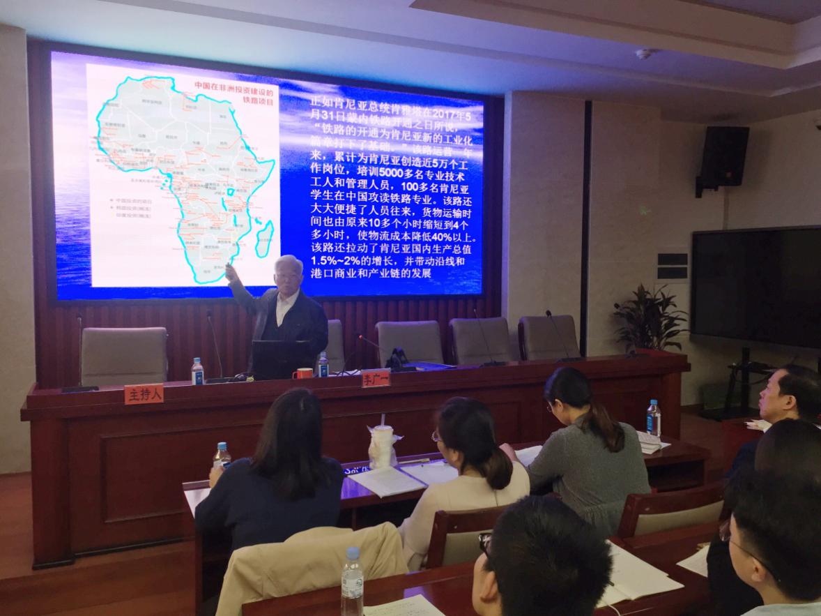 10月28日下午,应我校非洲研究中心的邀请,我国非洲学研究的开创者之一、国际问题资深专家、湘潭大学非洲研究所前所长李广一教授莅临365英国上市集团景德楼三楼学术报告厅,作了题为“新世纪中非友好合作发展透析”的学术讲座。此次讲座为“中非关系大讲堂”系列讲座的第一讲,讲座由我校非洲研究中心主任陈晓红教授主持,校党委副书记、政治学一级学科负责人刘起军教授、365英国上市集团党委副书记孙雯波等百余名师生聆听了本次讲座。