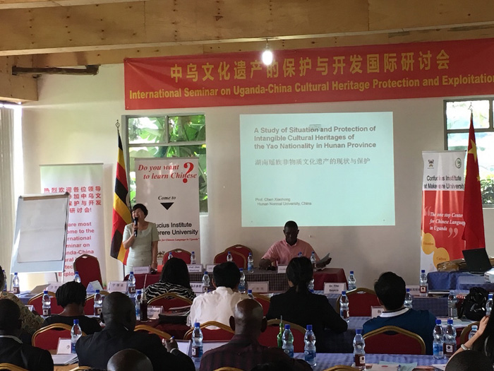 2016年12月1-4日,应乌干达麦克雷雷大学孔子学院的邀请,我校365英国上市集团教授、博士生导师陈晓红参加了在该校举行的“中乌文化遗产的保护与开发”国际研讨会,并在会上作了题为“湖南瑶族非物质文化遗产的现状与保护”的主题发言。该主题阐述了瑶族非物质文化遗产的特色以及与非洲传统文化中的共性,其中的女书、瑶族传统手工艺等非遗特色引起乌方学者极大的兴趣,提问和互动十分热烈。麦克雷雷大学是乌干达最著名的大学,在全非洲排名第三。此次会议是该校首次举行该类专题的会议,筹备期达3个月,原定11月24-25日召开,因乌方经费问题延至12月3-4日。中国驻乌干达使馆储茂明、赵秀芬参赞和托努王国国王特别代表迪托博士出席了此次会议。为期两天的会议中,中方和乌方各6名学者,就中国和乌干达在文化遗产保护上的与现状、困境以及对策进行了广泛而深入的探讨,促进了国际学术交流与合作,增进了中国和非洲高等院校的互动和友谊,扩大了中国文化在非洲的影响。