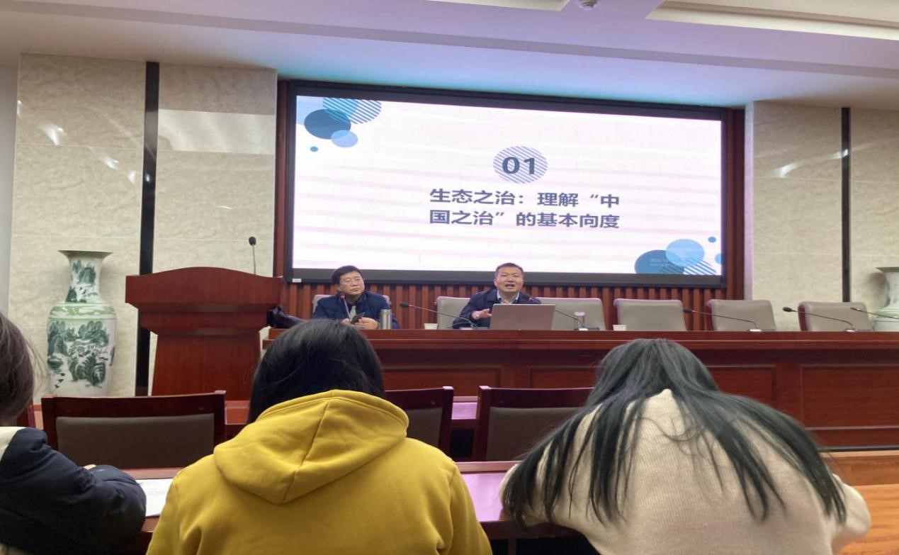 11月27日下午,中国社会科学研究院林跃勤研究员和同济大学余敏江教授应邀莅临我院讲学,在博后楼三楼学术报告厅分别进行了“咨询报告撰写浅析”和“‘中国之治’的现代化绿色图景”的讲座,讲座由肖建华教授主持,我院师生共70余人参加了讲座。