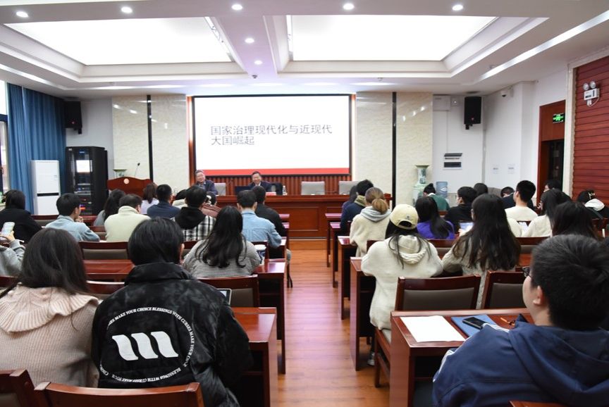 (通讯员 王绪 肖伟)2023年4月6日下午,北京大学政府管理学院教授、博士生导师,中国政治学研究中心学术委员会主任何增科教授应邀在景德楼三楼学术讲堂开展了题为“国家治理现代化与近代大国崛起”的学术讲座。讲座由政治学一级学科博士点主办,我院副院长王敏教授主持,政治学专业部分教授、青年教师以及60余名硕博研究生参加本次讲座。