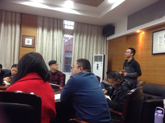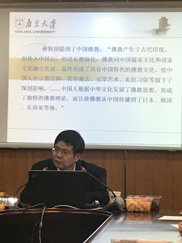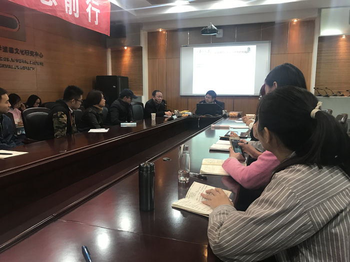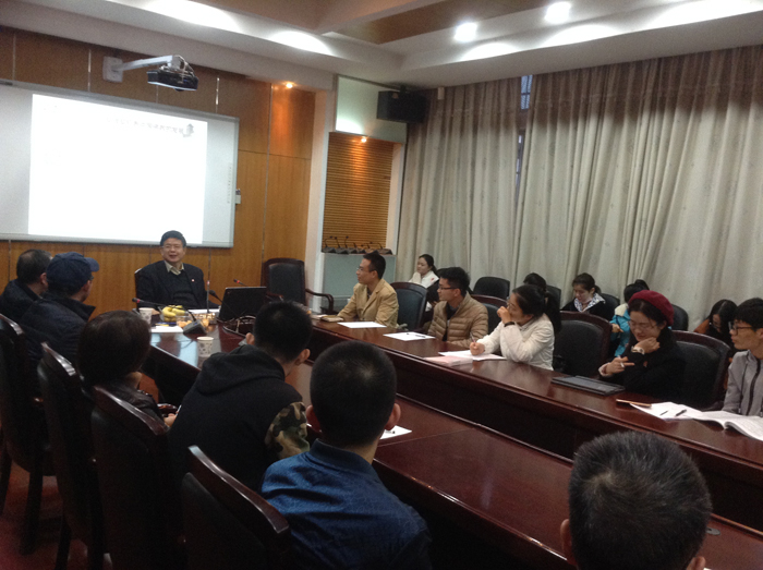 2017年11月25日下午,南京大学洪修平教授受邀来我院讲学,讲学主题为“中国佛教文化的特色及其传承发展”。讲座由张怀承教授主持,哲学系欧顺军副教授、丁小平副教授、邹啸宇老师、尹哲老师及哲学系研究生等参加了这场学术交流。