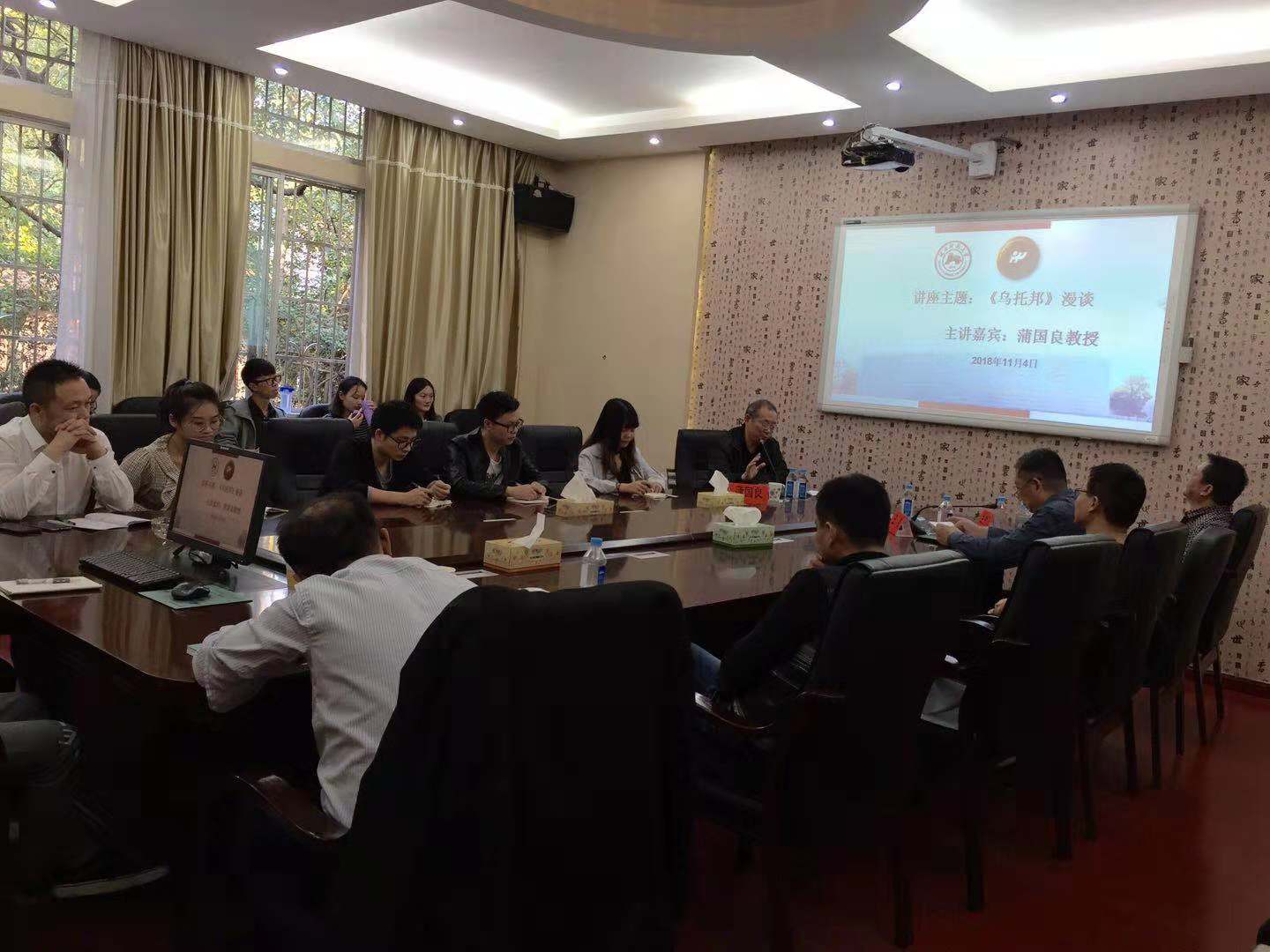 (通讯员陶富林)2018年11月5日下午,中国人民大学国际关系学院世界社会主义研究所所长,博士生导师蒲国良教授莅临365英国上市集团,为师生带来题为“《乌托邦》研究漫谈”的学术讲座,讲座由政治学一级学科博士点主办,由严小龙教授主持,王敏教授等政治学一级学科部分教师、博士研究生、硕士研究生聆听了本次讲座。