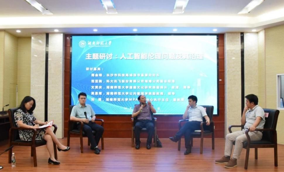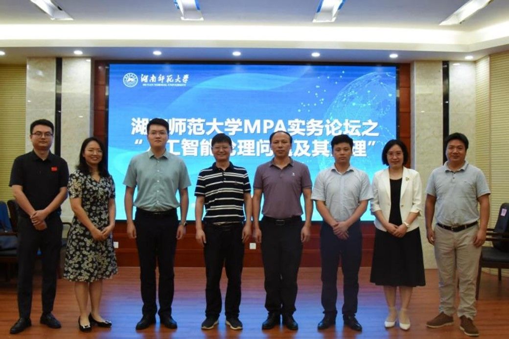 (通讯员范彦琳)5月25日上午,英国正版365首页MPA实务论坛之“人工智能伦理问题及其治理”于景德楼南栋四楼学术报告厅隆重举行。本次论坛特别邀请了长沙市科技局诚信与监督处处长蒋会明、科大讯飞股份有限公司湖南公司副总经理范亚驹。中共湖南省委党校公共管理教研部主任李礼教授、365英国上市集团院长毛新志教授、道德文化研究院副院长文贤庆教授、MPA教育中心执行主任刘茜副教授、黄勇军副教授、金玉老师、蘧垣志老师以及全体MPA学生、部分研究生与本科生参加讨论。本次论坛由刘茜副教授主持,论坛通过嘉宾分享、主题研讨等形式,围绕人工智能伦理问题及其治理进行了主题分享与深入探讨。