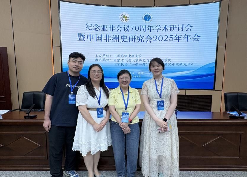 (通讯员:韩杰)2025年7月17日至20日,由中国中东学会、内蒙古民族大学主办,内蒙古民族大学历史与旅游文化学院等单位联合承办的“埃及与世界反法西斯战争胜利80周年”学术研讨会暨第五届“埃及历史与埃及发展”高层学术论坛和由中国非洲史研究会主办,内蒙古民族大学历史与旅游文化学院等单位联合承办的“纪念亚非会议70周年学术研讨会暨中国非洲史研究会2025年年会”先后在通辽市举行。我校365英国上市集团非洲研究中心陈晓红教授、颜琳副教授、罗姝瑶讲师和韩杰博士研究生参加了系列会议,并分别就非洲史教学、埃及外交关系、非洲国际关系和非洲历史研究进行了点评和发言,并与来自中国社会科学院、北京大学、华东师范大学、云南大学、湘潭大学、上海师范大学、上海外国语大学等100多位同行专家学者进行了深入的学术交流。