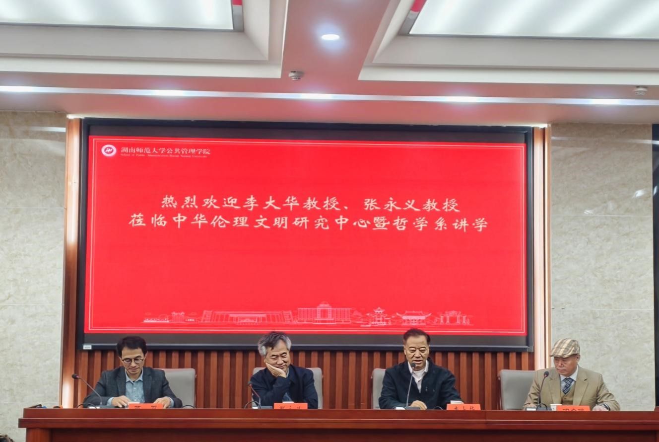(通讯员 曹飞艳)10月28日上午,深圳大学哲学系李大华教授、中山大学哲学系张永义教授应邀莅临我院哲学系,以“庄子与儒家”为题作学术讲座。本次讲座由哲学系邓名瑛教授主持,哲学系萧平副教授与谈,邹啸宇副教授、费春浩讲师、哲学系三十余名博士生、硕士生参加了讲座。