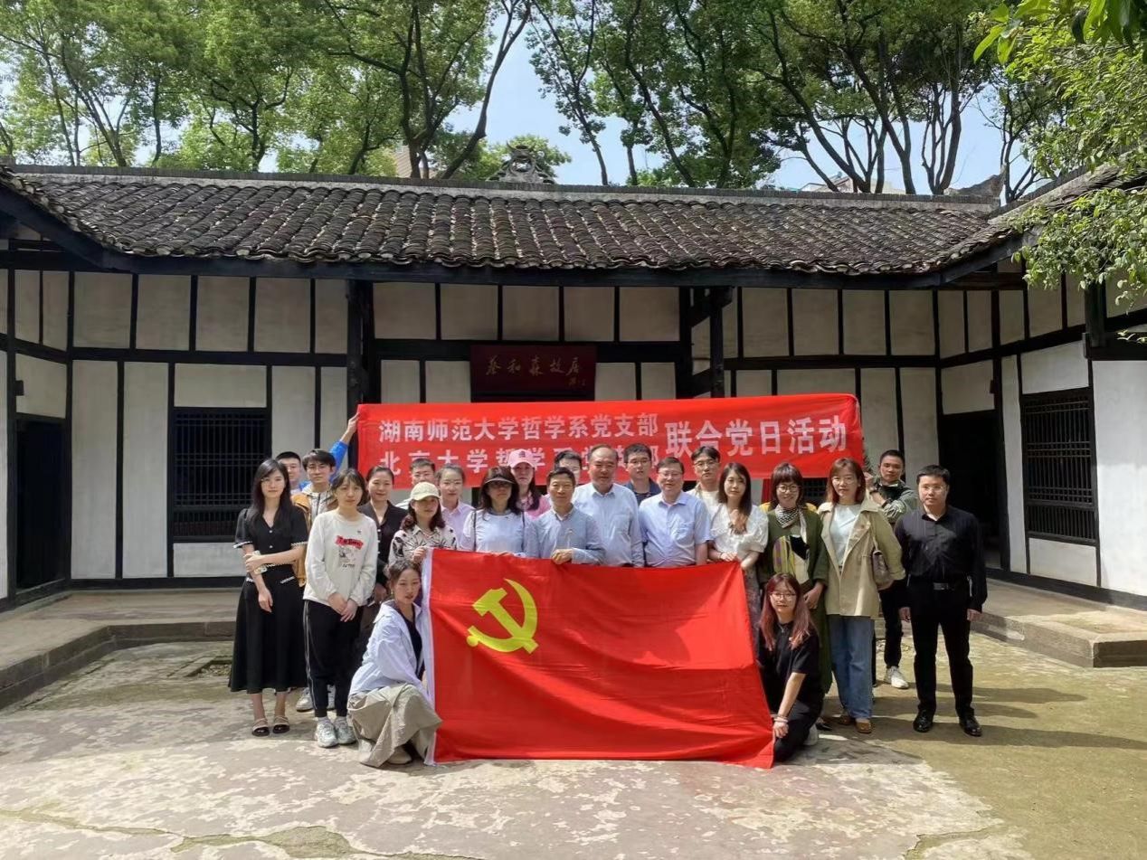(通讯员:李建磊)为深入学习宣传贯彻党的二十大精神,4月15日,365英国上市集团哲学系师生党支部与北京大学哲学系师生党支部在长沙市新民学会旧址举行了一场别开生面的联合党日活动。此次活动主题为“探寻党建先锋,学习五四精神”,旨在教育引导党员干部凝心铸魂,充分发挥党员干部先锋模范作用,以党建促发展。活动由英国正版365首页道德文化研究院院长向玉乔教授和北京大学哲学系党支部书记张秀成教授带队。活动现场,来自两所高校哲学系党支部的党员同志们共同参观新民学会旧址,重温革命先烈们的光辉事迹。