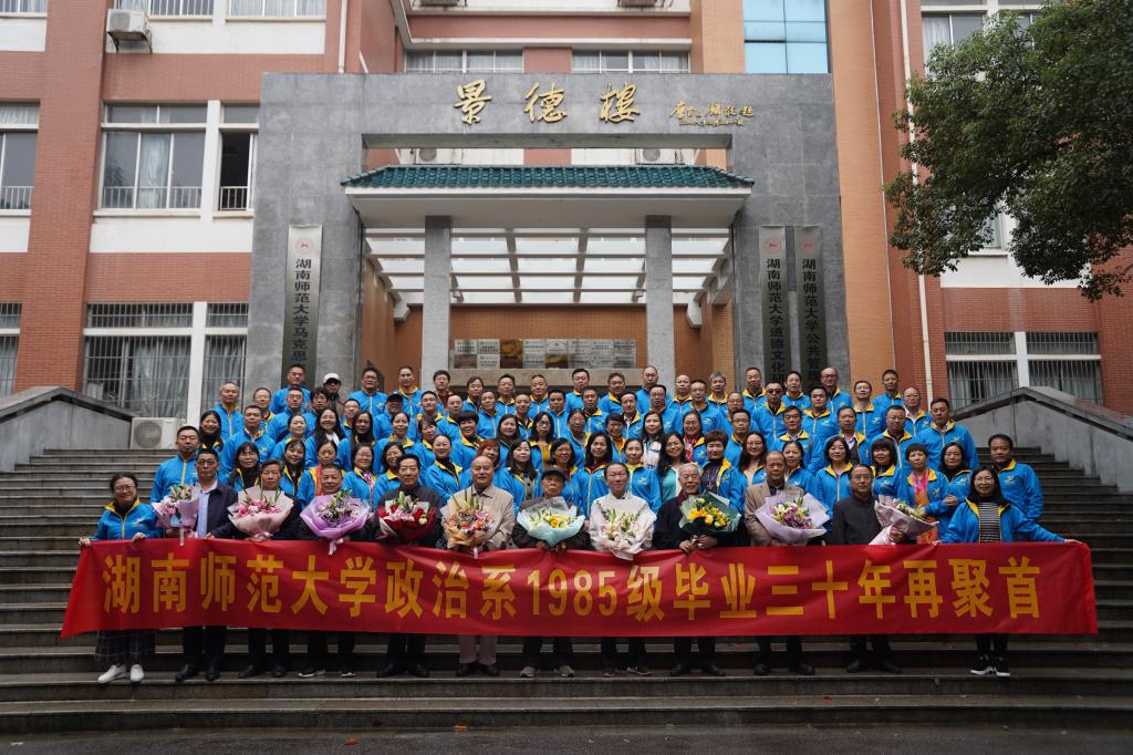 同学代表袁颜锋、姜维、曾秋喜、王静波在会上分别做了发言,深情回忆了求学母校时的情景,感恩母校的谆谆教诲与培养,感慨学院(系)今天的兴旺发达。活动结束后,师生在景德楼前合影留念。