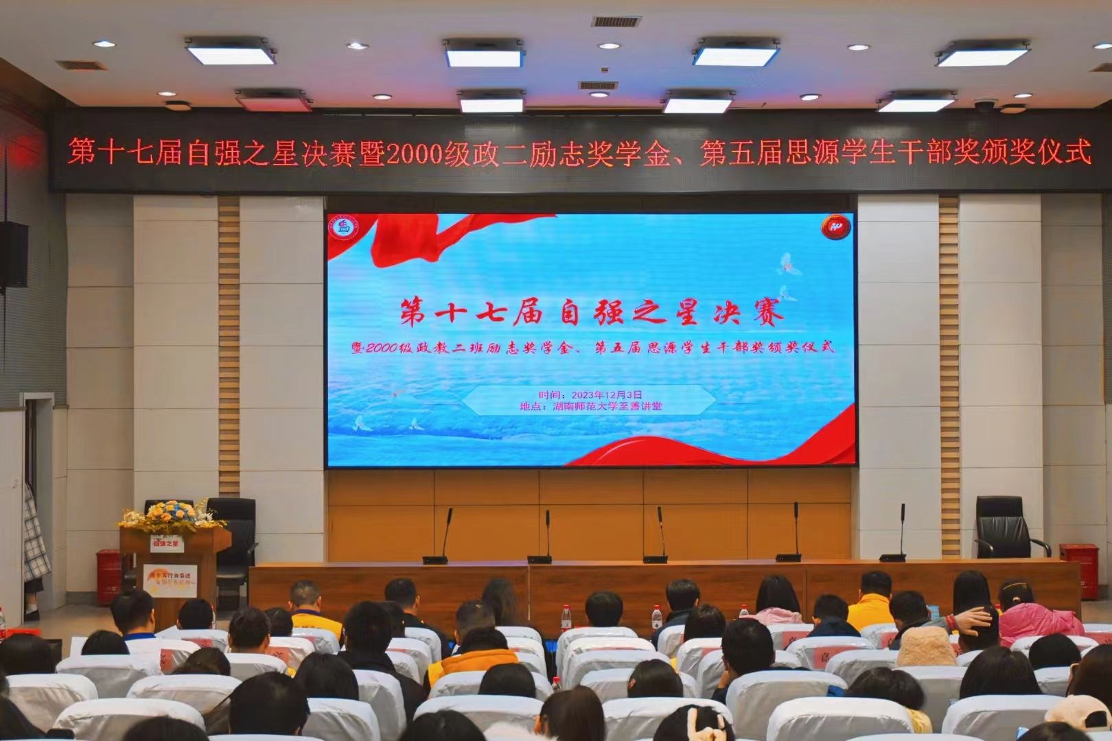 麓山枫叶经霜斑斓,景德学子御风翱翔。初冬的长沙窗外寒风渐起,但至善讲堂内温暖备至,又到了一年探亲季,又是一年感恩时。12月3日,我校365英国上市集团与马克思主义学院在至善讲堂举行第十七届“自强之星”决赛暨2000级政二励志奖学金、第五届思源学生干部奖颁奖仪式。