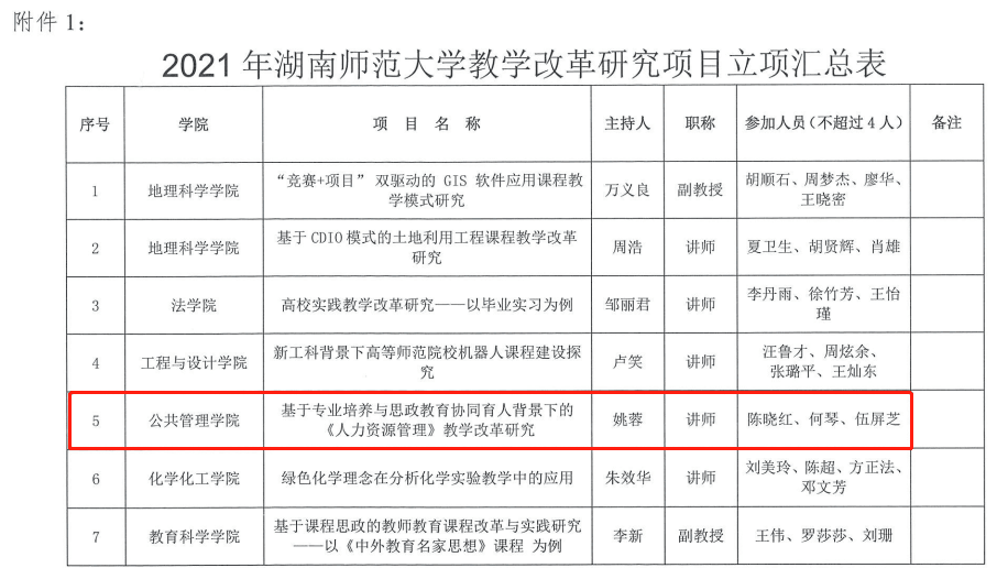 根据《关于开展 2021 年湖南省普通高等学校教学改革研究项目立项和结题工作的通知》(湘教通〔2021〕189 号)和《关于开展2021年教学改革研究项目申报立项和对已立项项目进行中期检查与结题验收的通知》(处发〔2021〕71号),经专家评审,我院哲学系马俊老师、彭婷老师获2021 年湖南省普通高等学校教学改革研究项目立项,行政管理学系姚蓉老师获2021 年英国正版365首页教学改革研究项目立项。