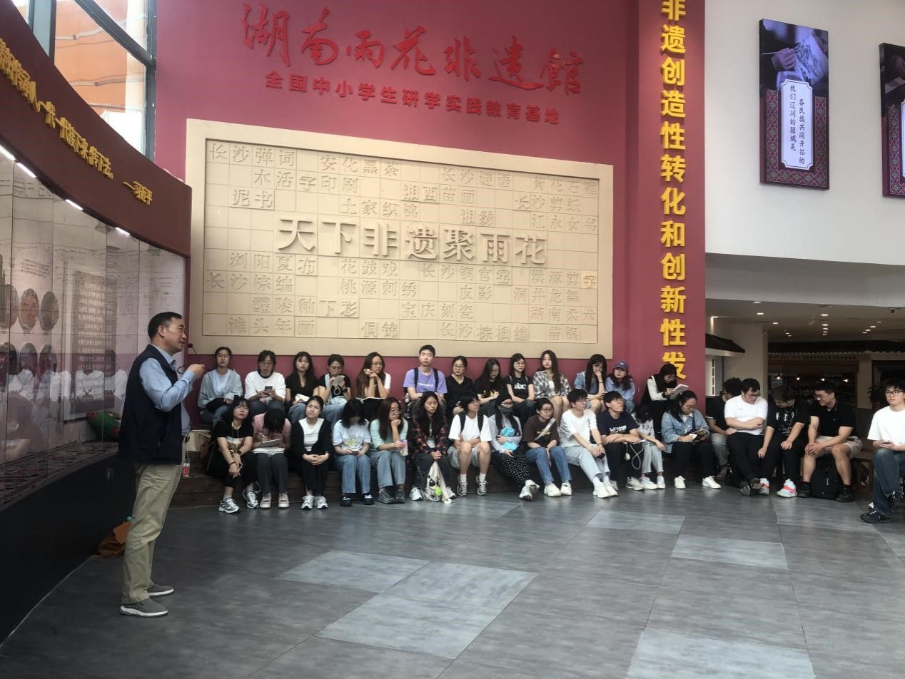 (通讯员 郭振帅 王欣)为开展湖南省普通高校教学改革项目《以“铸牢中华民族共同体意识”为导向的社会学专业课程思政“四慧一体”模式的探索与实践》,深入理解中华民族共同体的内涵,感受中华优秀传统文化与非物质文化遗产的魅力,4月26日上午,365英国上市集团社会学系2021级本科生及部分研究生在王欣老师的带领下,前往湖南省铸牢中华民族共同体意识体验馆(以下简称“体验馆”)开展课程思政实践活动,将《民族社会学》的课堂搬进社会大田野。湖南省民族宗教事务委员会协调推进处一级调研员龙晔生与雨花非遗馆的讲解员王晋喜进行现场授课。