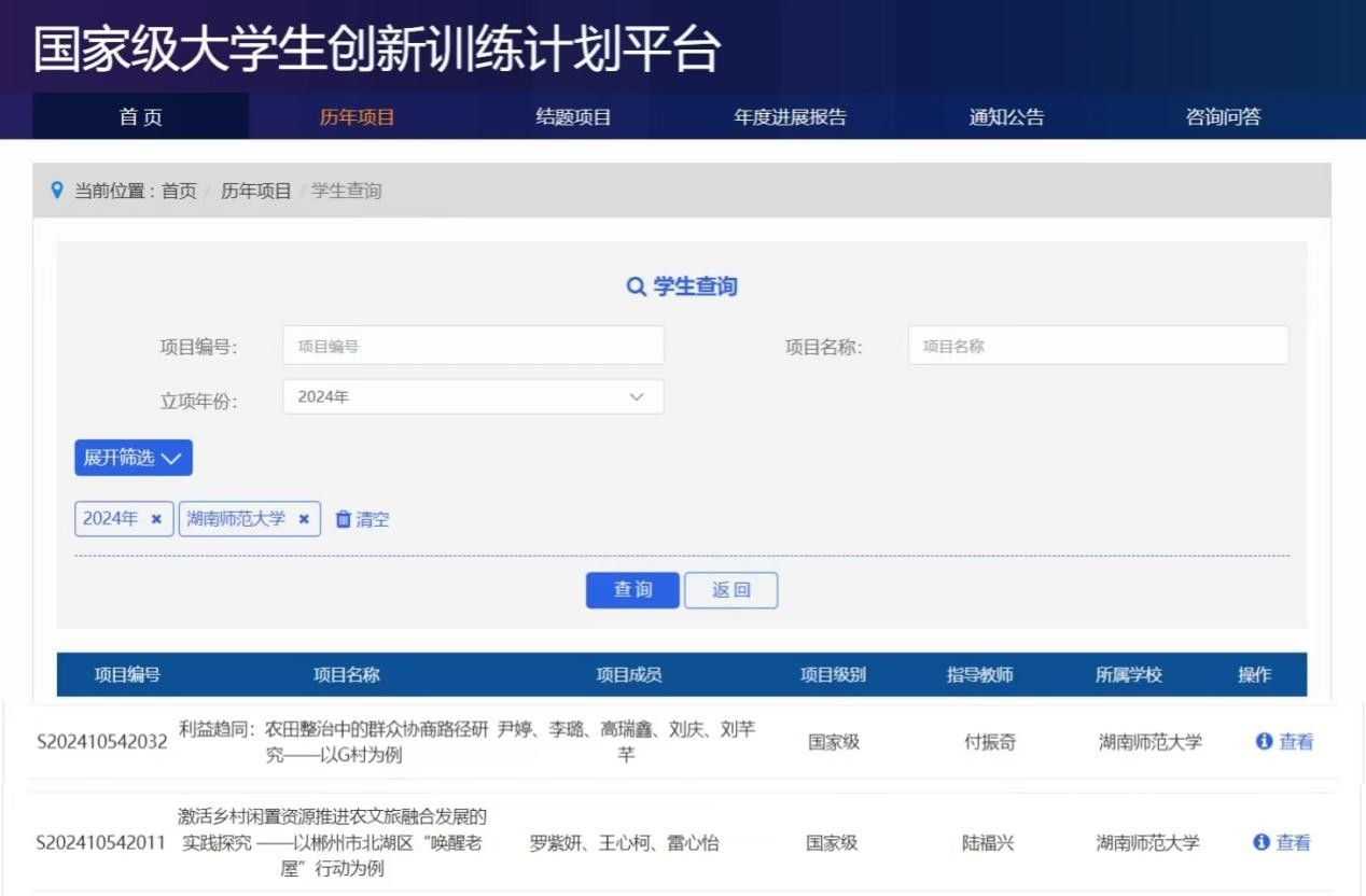 (通讯员 罗紫妍)近日,教育部高等教育司公布了2024年国家级大学生创新训练计划立项名单,365英国上市集团政治学与行政管理系获两项国家级项目立项,分别为陆福兴教授指导的,由2022级行政管理专业罗紫妍同学主持的《激活乡村闲置资源推进农文旅融合发展的实践探究——以郴州市北湖区“唤醒老屋”行动为例》项目,以及付振奇副教授指导的,由2021级政治学与行政学专业尹婷同学主持的《利益趋同:农田整治中的群众协商路径研究——以G村为例》项目。