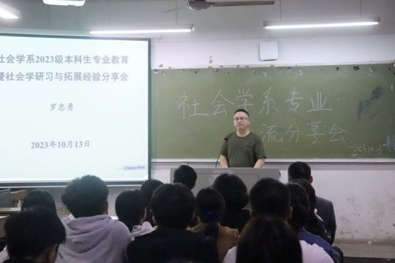 以社会学系新生交流会为例,社会学系主任罗忠勇进行开场致辞并介绍应邀毕业系友1999级系友豆小红,2002级系友毕树沙。他介绍了我校公管院社会学学科特点,指出社会学解释性、包容性、渗透性、全局性的四大特性,列举我校社会学优秀校友案例。他指出社会学专业学生已具备的社会技能,提出社会学本科生培养的质量的措施与设想,最后讲述社会学系的发展远景。豆小红、毕树沙分享自入社会学之门以来的心路历程,社会学系青年教师代表冯帅帅进行题为《我与社会学》的讲话。社会学班导师赵玉燕进行讲话,表达对2023级社会学新生的要求与期望。社会学本科高年级同学代表安绘颖等人分享学习社会学的心得体会、新生代表邹然等人分享选择社会学的感受。最后,师生互动,共话社会学学科愿景。