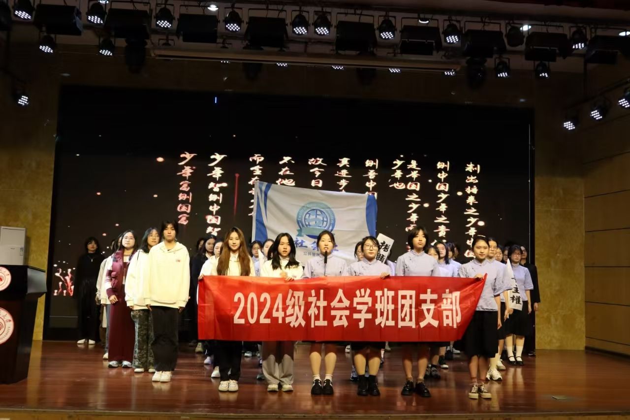 各班团支部依次进行风采展示,2024级哲学班团支部表演哲思节目《哲学秀》,充分展示了哲学班“博学慎思,明辨笃行”的班级理念。2024级社会学班团支部带来了情景剧《觉醒年代,吾辈有我》和合唱歌曲《有我》,展现了青年一代的爱国热情与责任担当,结尾处的朗诵《少年中国说》表现了社会学班“社会如海,踏浪拼搏”的青春活力。2024级行政管理班团支部呈现情景剧《拥抱青春》,并对《起风了》进行创造性改编作为班歌,情景剧真实展现了师大学子对大学的期待以及对未来的展望。2024级政治学与行政学班团支部演绎《百年风华正茂》的红色故事,展示了他们“浮舟沧海,立马昆仑,志之所趋,无远弗届”的班训。
