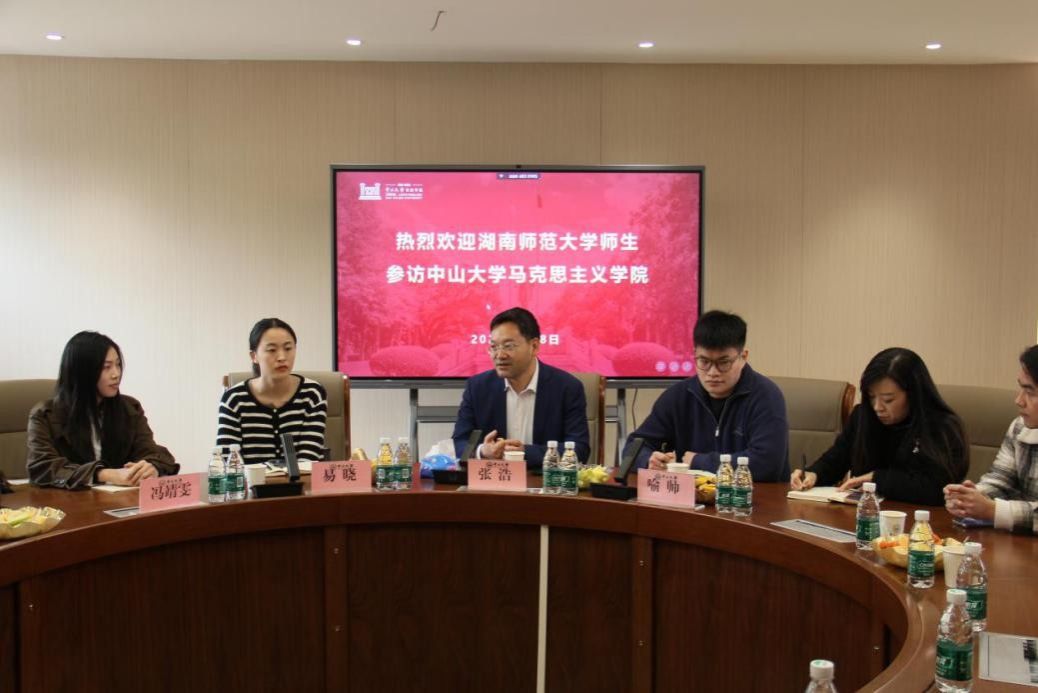 开班仪式结束后,研学团乘车前往中山大学,与中山大学马克思主义学院副院长张浩和其博士研究生、硕士研究生代表们一同交流分享。在交流会上,张浩对研学团的来访表示欢迎。他回顾了自己在师大的求学经历,并向研学团成员介绍了与会研究生代表及中山大学马克思主义学院的基本情况。与会人员围绕“求学与就业”展开了座谈讨论。张浩的博士研究生、硕士研究生们依次分享了各自的学习、学生工作和就业经验,他们强调了学习在学习阶段的重要性,与此同时,也着重说明了要“两条腿走路”,重视学生工作,以达到学业与学生工作二者之间的平衡,利用从学生工作中获得的经验和技能来提升自己的就业竞争力。在互动交流环节,研学团与研究生代表们探讨了如何发现“真”问题,寻找研究切入点;如何兼顾理想与现实,在实践中尽力而为。