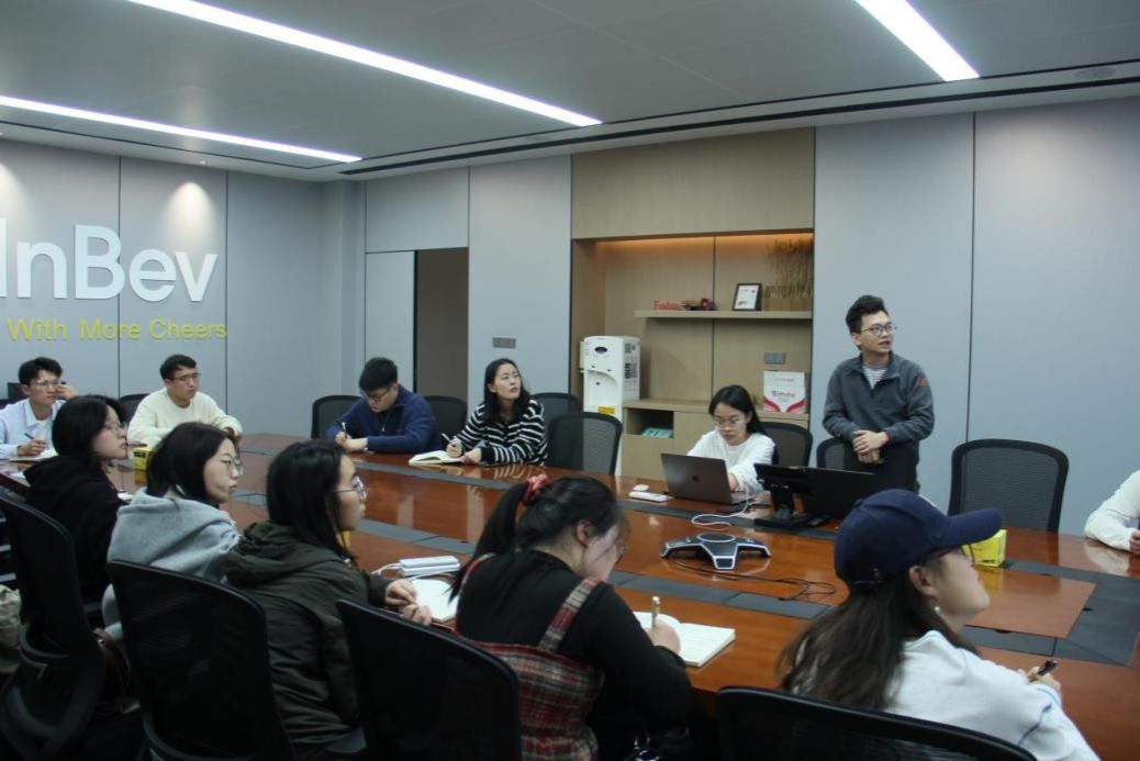 下午,研学团前往百威(佛山)有限公司参观,并在工作人员的带领下进入生产车间,了解啤酒的制造工艺,近距离接触啤酒包装流水线。随后,百威集团黄帆生向研学团成员深入介绍了VPO管理系统的主要结构、发展历程与应用范围。