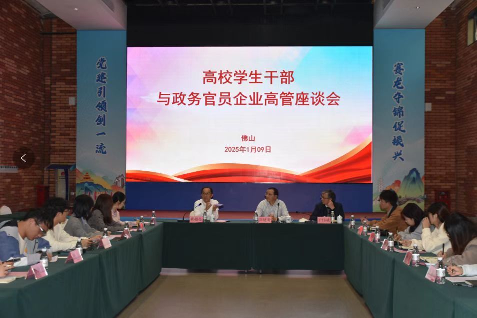 下午,研学团赴三水区乡村人才驿站路演厅,参加高校学生干部与政务官员企业高管座谈会,与原佛山市公安局党党委委员、政治处主任彭建炎,佛山市三水区教育局副局长于伟就以及广东金戈新材料股份有限公司董事长黄超亮进行深入讨论与交流。随后,研学团成员在彭建炎和黄超亮的带领下到广东金戈新材料股份有限公司工厂进行参观,了解公司先进的实验技术手段。思想政治教育专业2000级优秀校友喻晓坤也前往工厂,与同学们进行现场交流与分享。