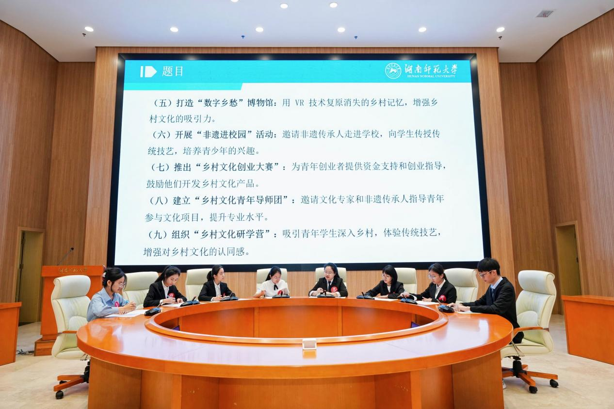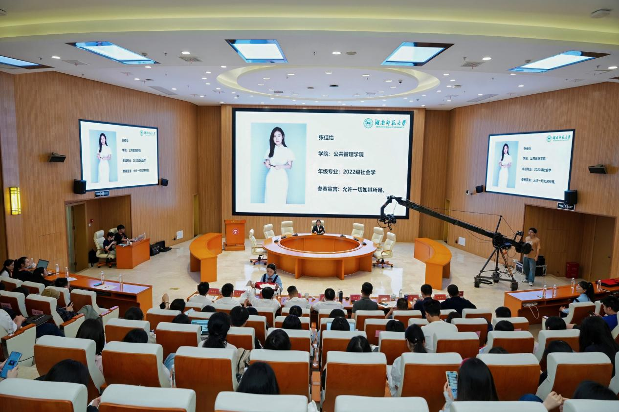 招生与就业指导处原处长宋叔培、教育科学学院党委书记向发意、社会科学处副处长阳旺、我院政治学与行政管理系副教授黄勇军、考德上教育副总经理罗景腾、长沙市岳麓区橘子洲街道党工委副书记熊海江、信息科学与工程学院2022届毕业生暨长沙市开福区秀峰街道办事处自然资源和城市建设事务中心副主任陈林峰、我院2023届毕业生暨宁乡市黄材镇党政办副主任杨尚文等嘉宾担任评委。我院党委副书记陈丽荣、学工办主任林哲旭、各年级辅导员及200余名学生参加活动。