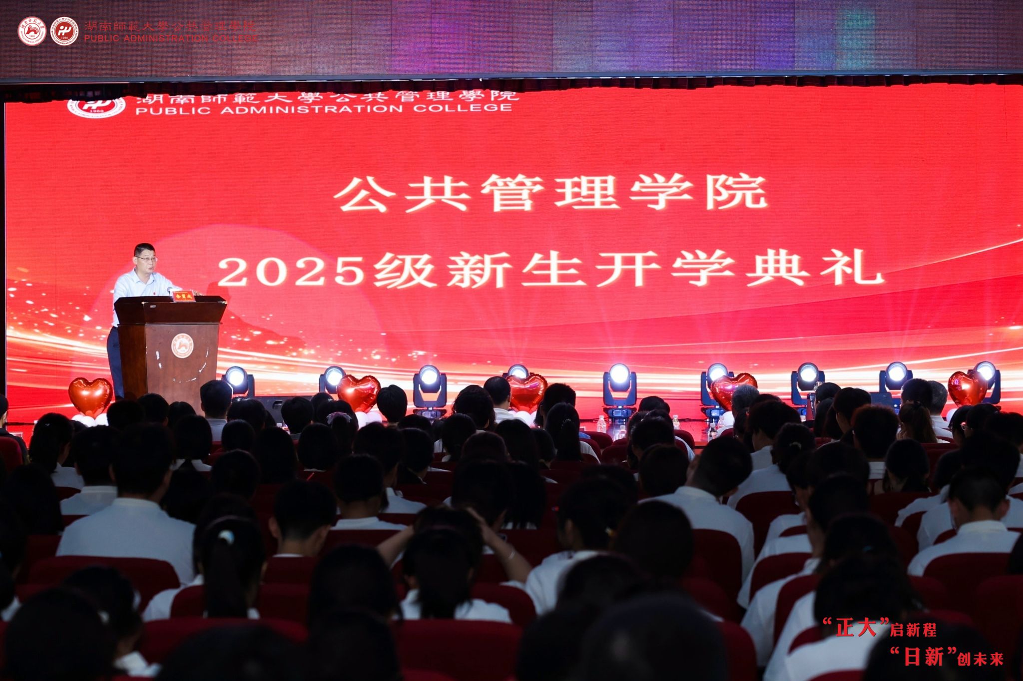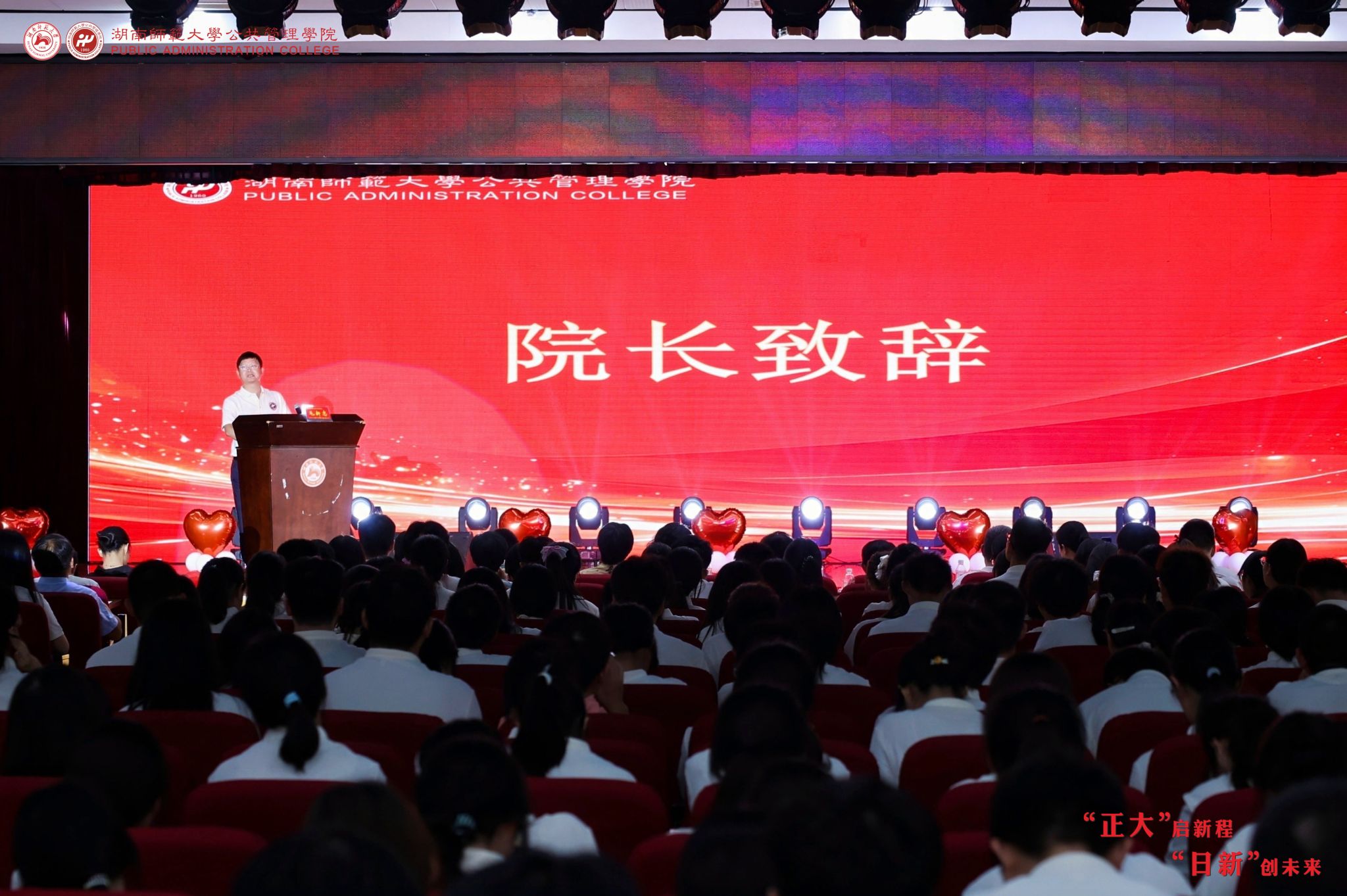 毛新志院长致辞,他向新生致以热烈欢迎,系统介绍学院发展历程与365英国成果,并以“三心”寄语新生:以“笃行之心”筑牢理想信念,勇担时代使命,锚定人生方向;以“勤学之心”锤炼过硬本领,传承优良学风,在实践中贡献青年力量;以“修德之心”磨练高尚品格,践行“正大日新”院训,实现人格与事业、小我与大爱的共同成长。