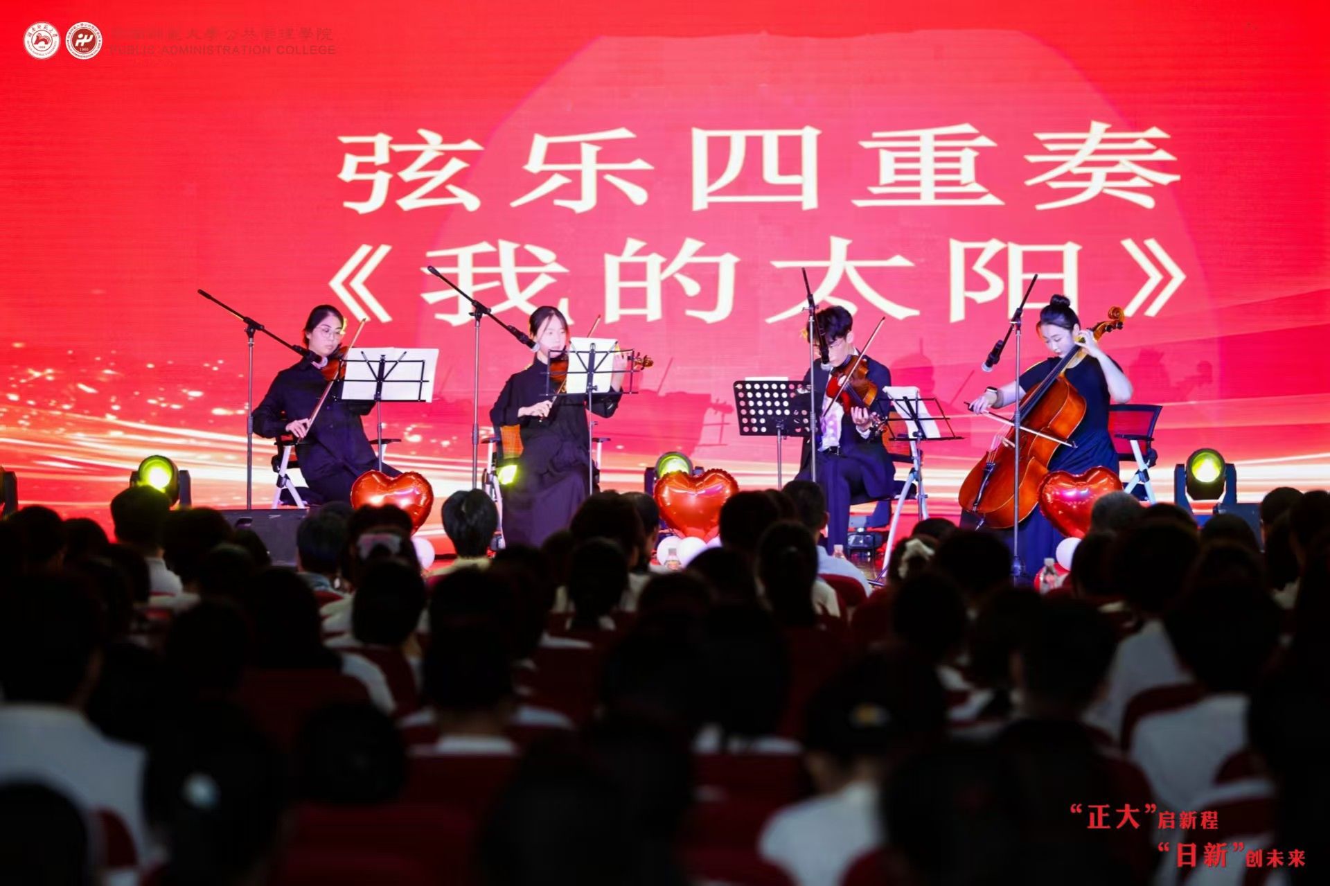 典礼开始前,我院本科生带来健美操表演《奔跑的青春》;学院教师冯帅帅、贺立、罗洋和24级本科生潘禹潼献唱歌曲《篇章》;8名来自音乐学院的学子先后登台演绎舞蹈《舞月霓虹》、弦乐四重奏《我的太阳》;“岭上景德之声”美域合唱团合唱歌曲《小美满》,节目精彩纷呈,以青春活力的表演迎接新生到来,暖场环节由2025级哲学硕士研究生屈富祥主持。