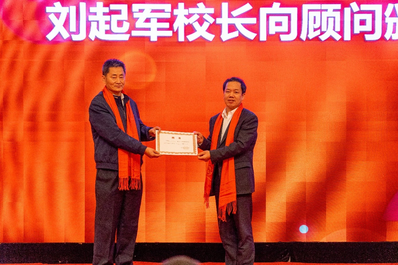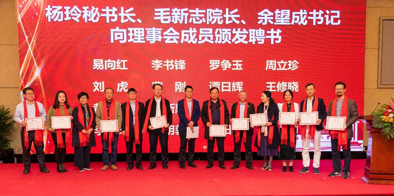 校长刘起军、校友总会秘书长杨玲、学院党委书记余望成、院长毛新志等与会校院领导为当选的理事会成员颁发聘书。