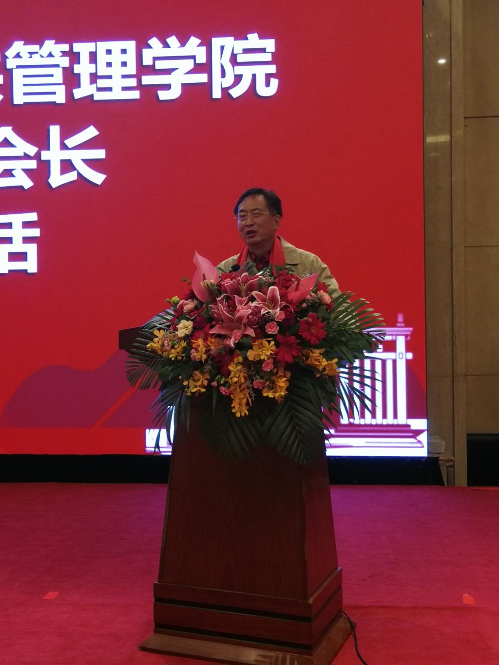 首任会长,原国家教育行政学院常务副院长、党委书记黄百炼先生致辞。他回忆了自己与学院和学校的诸多往事。表示将与理事会的所有人一道努力,认真服务校友,积极促进校友会与学院、学校之间的联系,为母校、母院的发展做出更大贡献。