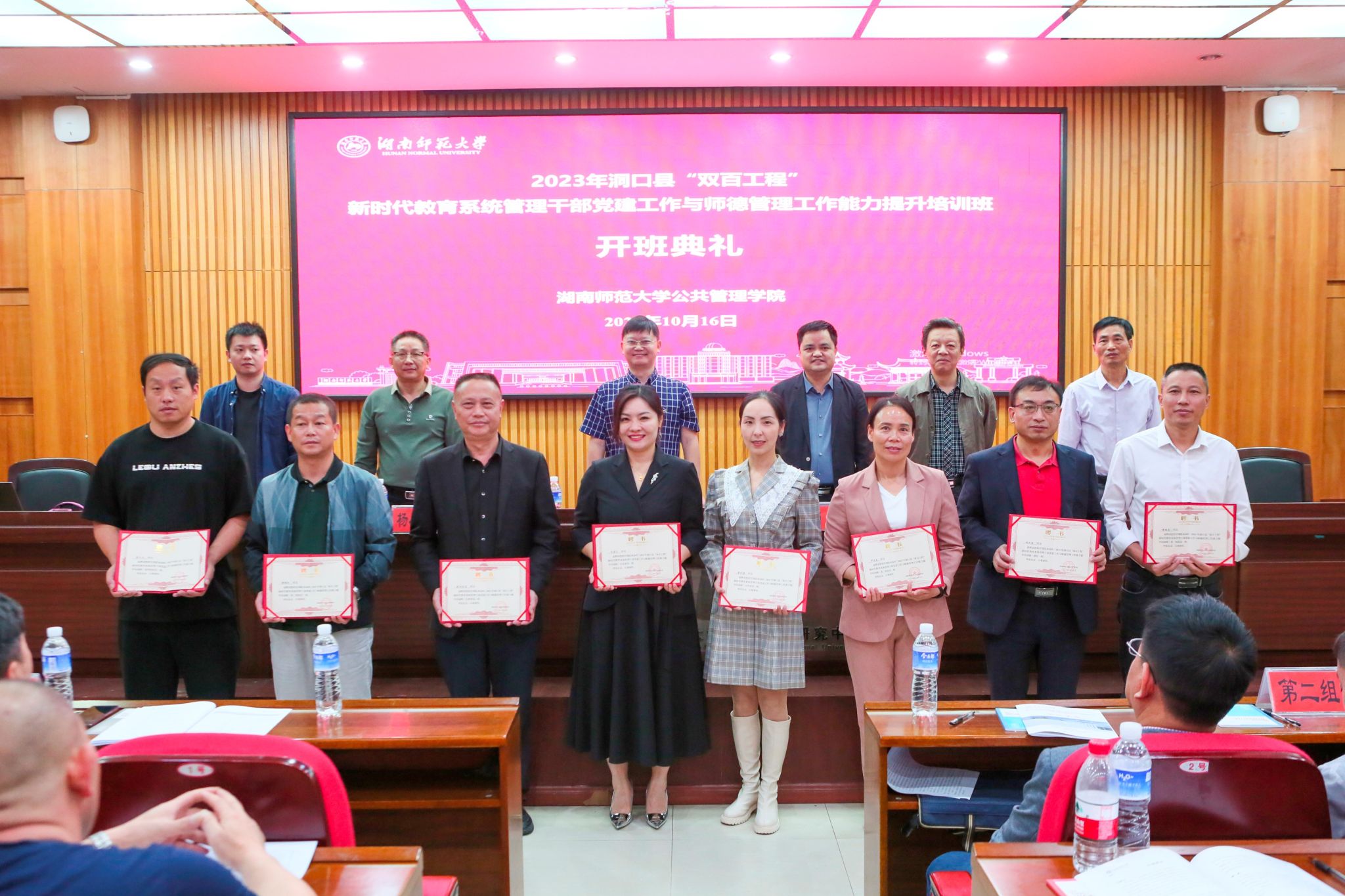 2023年洞口县“双百工程”新时代教育系统管理干部党建工作与师德管理工作能力提升培训班全体学员参加了典礼。