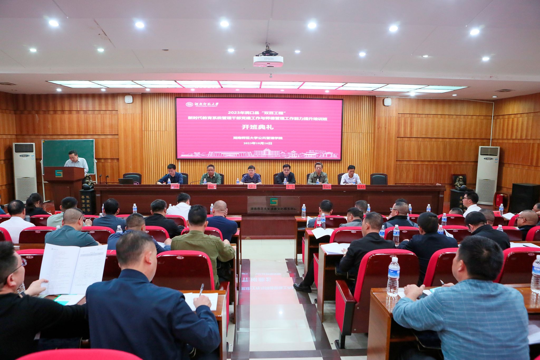 10月17日上午8:30,由洞口县教育局主办,我院和洞口县教师进修学校承办的2023年洞口县“双百工程”新时代教育系统管理干部党建工作与师德管理工作能力提升培训班开班典礼在我院三楼报告厅顺利举行。洞口县教育局党组副书记、副局长肖亮,教师工作股负责人杨小波,洞口县教师进修学校书记、校长戴永为,我院院长毛新志,副院长胡雪松出席典礼。典礼由我院培训中心主任邹水平主持。
