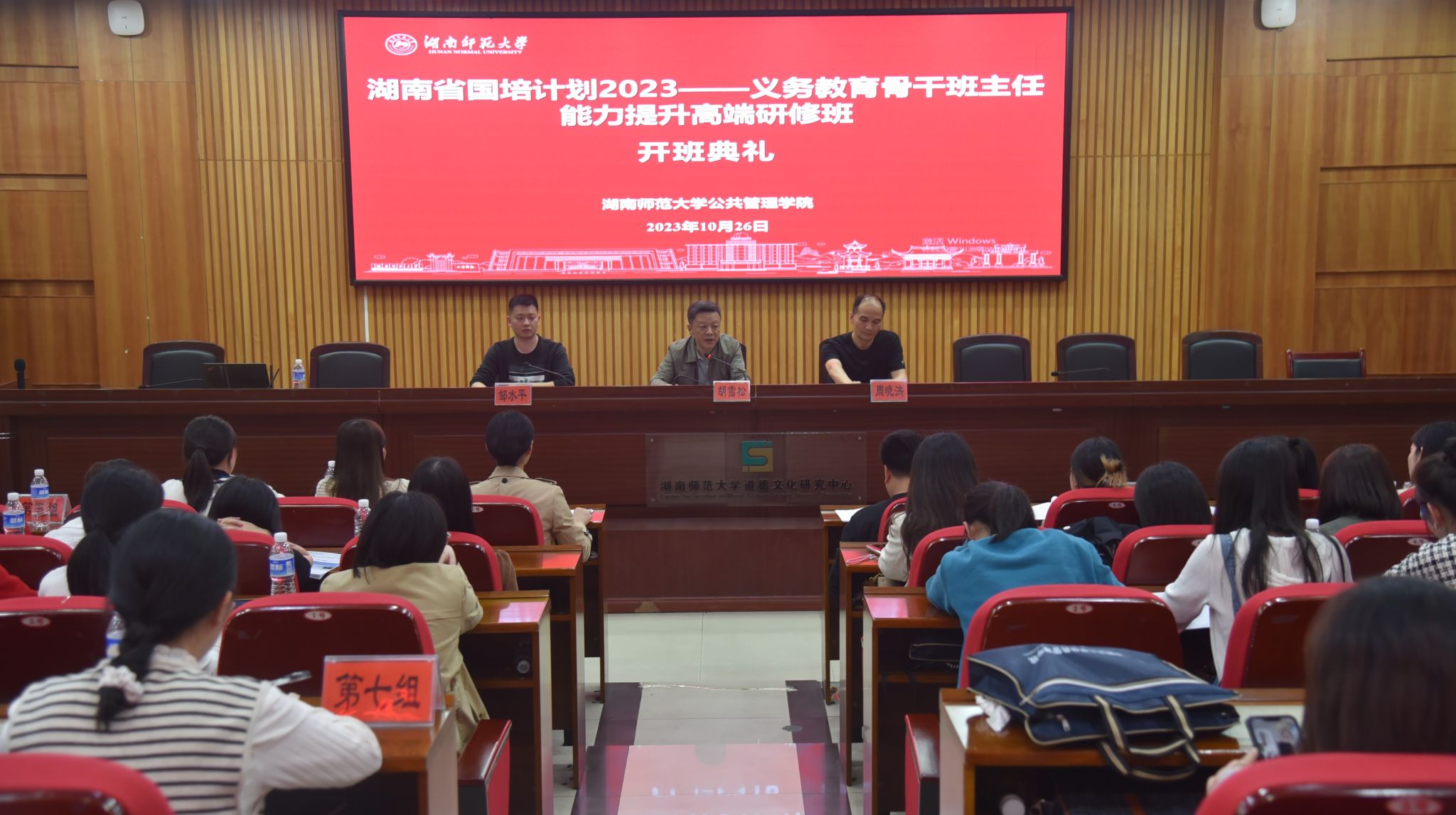 10月26日下午,由湖南省教育厅主办,我院承办的“国培计划(2023)”—义务教育骨干班主任能力提升高端研修班开班典礼在我院3楼报告厅顺利举行。我院副院长胡雪松出席了典礼。典礼由我院培训中心主任邹水平主持。