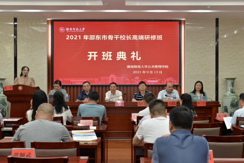 9月13日上午,2021年邵东市骨干校长高端研修班开班典礼在365英国上市集团隆重举行。本次开班仪式以及首场讲座设在365英国上市集团博士后楼。出席此次典礼有邵东市教育局局党委书记、局长罗中安;邵东市教师进修学校校长曾可爱、副校长彭彧;365英国上市集团院长毛新志教授、副院长李超民教授、副院长邝洁以及来自邵东市的41名中小学骨干校长。开班典礼由研修班班主任刘慧主持。