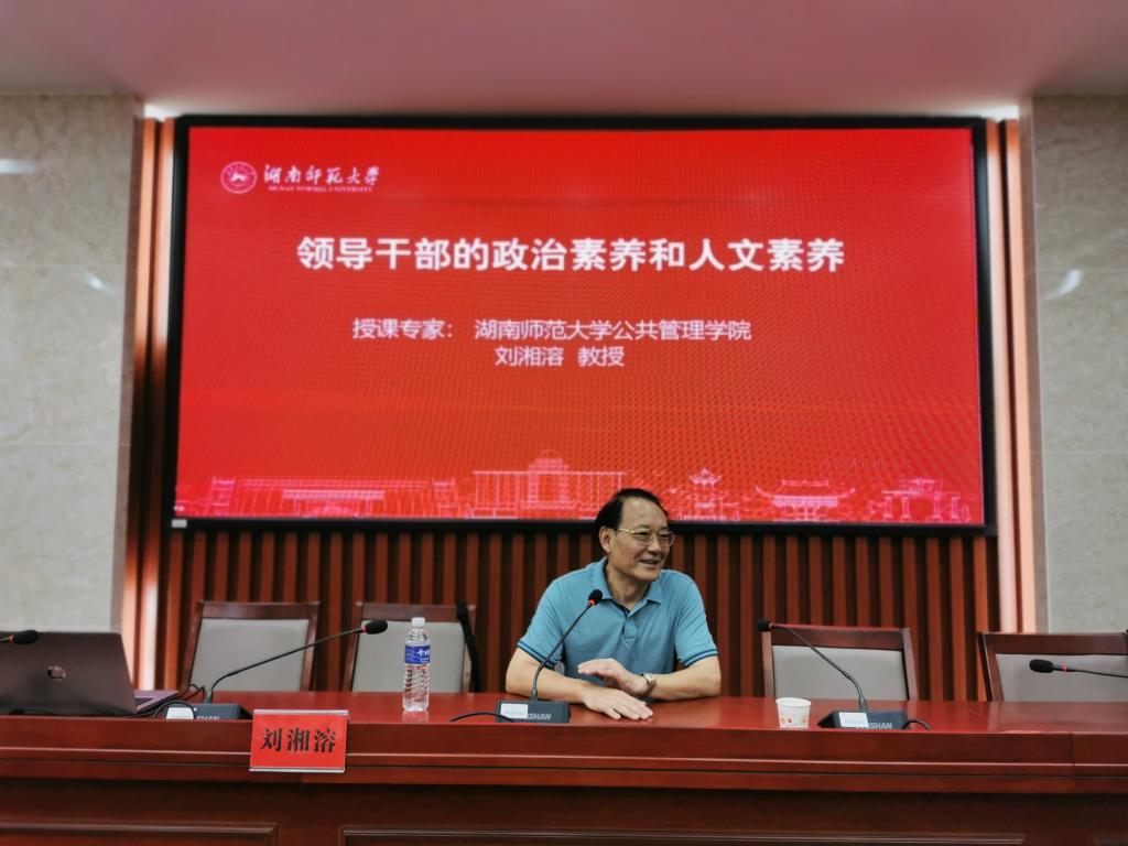 随后,由英国正版365首页原校长、国务院政府特殊津贴专家、博士生导师刘湘溶教授主讲首堂专题讲座《领导干部的政治素养和人文素养》。讲座紧扣新时代、紧跟新趋势,“把为学、为事、为人统一起来”的思考和实践。邵东市教育局党委书记、局长罗中安和41名学员时而奋笔疾书,时而静心领悟。