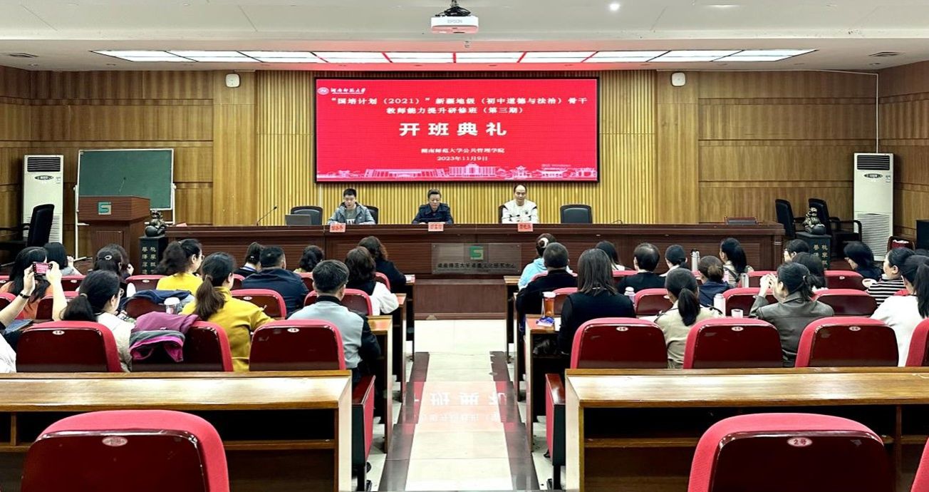 2023年11月10日上午,由新疆维吾尔自治区教育厅主办,我院承办的“国培计划(2021)”新疆初中道德与法治骨干教师能力提升培训班(第三期)开班典礼在我院三楼报告厅顺利举行。我院副院长胡雪松出席了本次典礼。典礼由我院培训中心主任邹水平主持。
