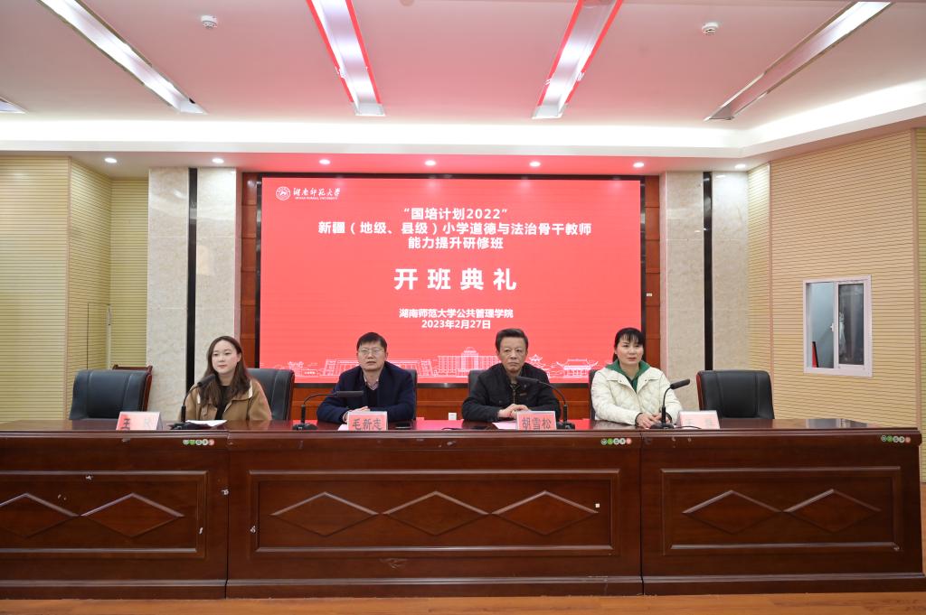 2月27日上午9:00,由新疆维吾尔自治区教育厅主办、我院承办的“国培计划2022”——新疆(地级、县级)小学道德与法治骨干教师能力提升研修班开班典礼在我院博后楼4楼报告厅顺利举行。我院院长毛新志、副院长胡雪松和培训中心主任王群出席了本次典礼,典礼由班主任王欣老师主持。