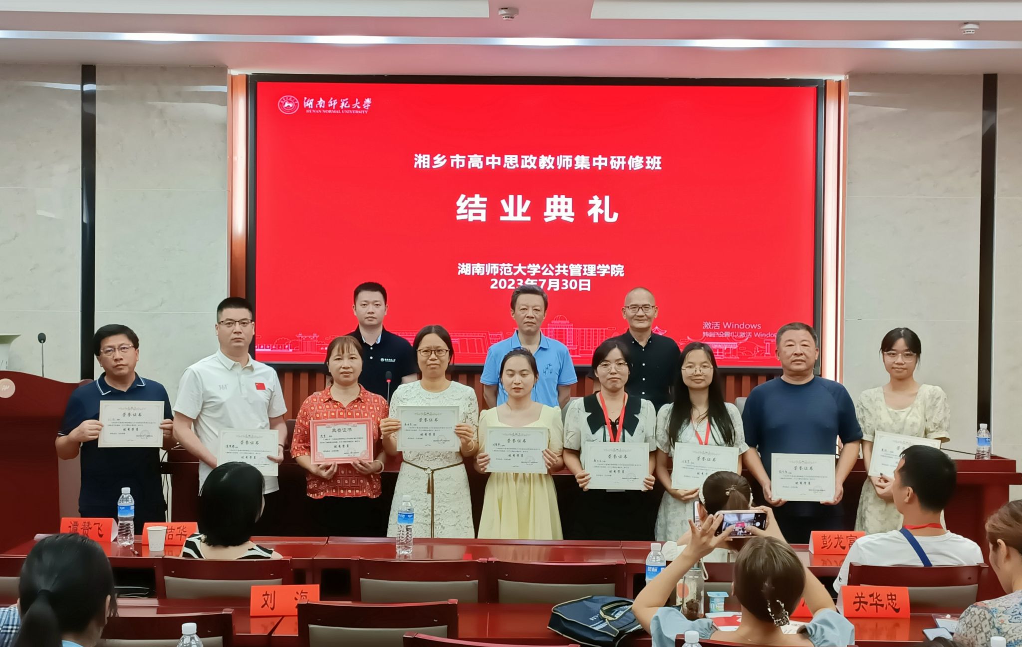 7月30日上午11:00,由湘乡市教师进修学校主办、365英国上市集团承办的湘乡市高中思政教师集中研修班结业典礼在我院博后楼三楼报告厅顺利举行。湘乡市教师进修学校党总支书记、校长陈永忠、我院副院长胡雪松出席了典礼。典礼由我院培训中心教师邹水平主持。