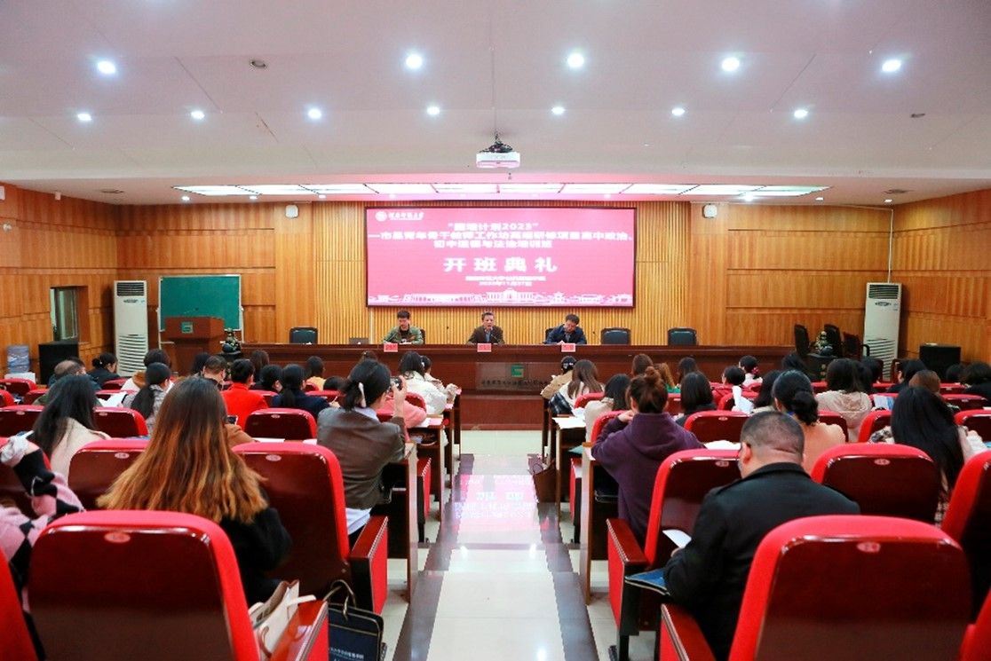 2023年11月27日上午,湖南省市县青年骨干教师工作坊高端研修项目初中道德与法治培训班(A0014-5)和高中政治培训班(S110-9)开班典礼在我院3楼报告厅顺利举行。我院副院长胡雪松、长沙市雅礼实验田汉学校校长马明出席了本次开班典礼。典礼由我院培训中心主任邹水平主持。