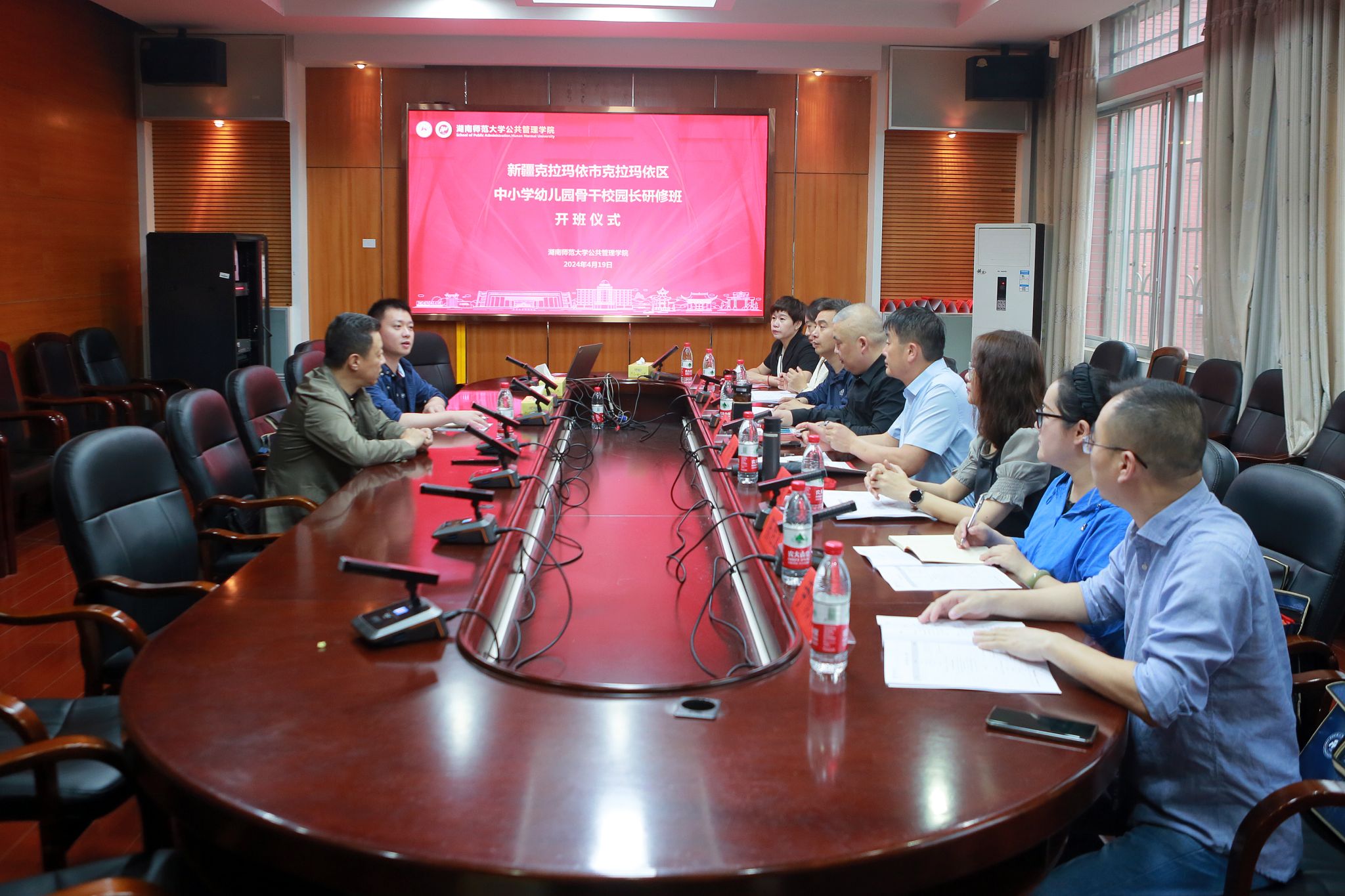 4月19日上午,新疆克拉玛依市克拉玛依区中小学幼儿园骨干校园长领导力研修班开班仪式在我院顺利举行。我院副院长胡雪松出席仪式,仪式由我院培训中心主任邹水平老师主持。