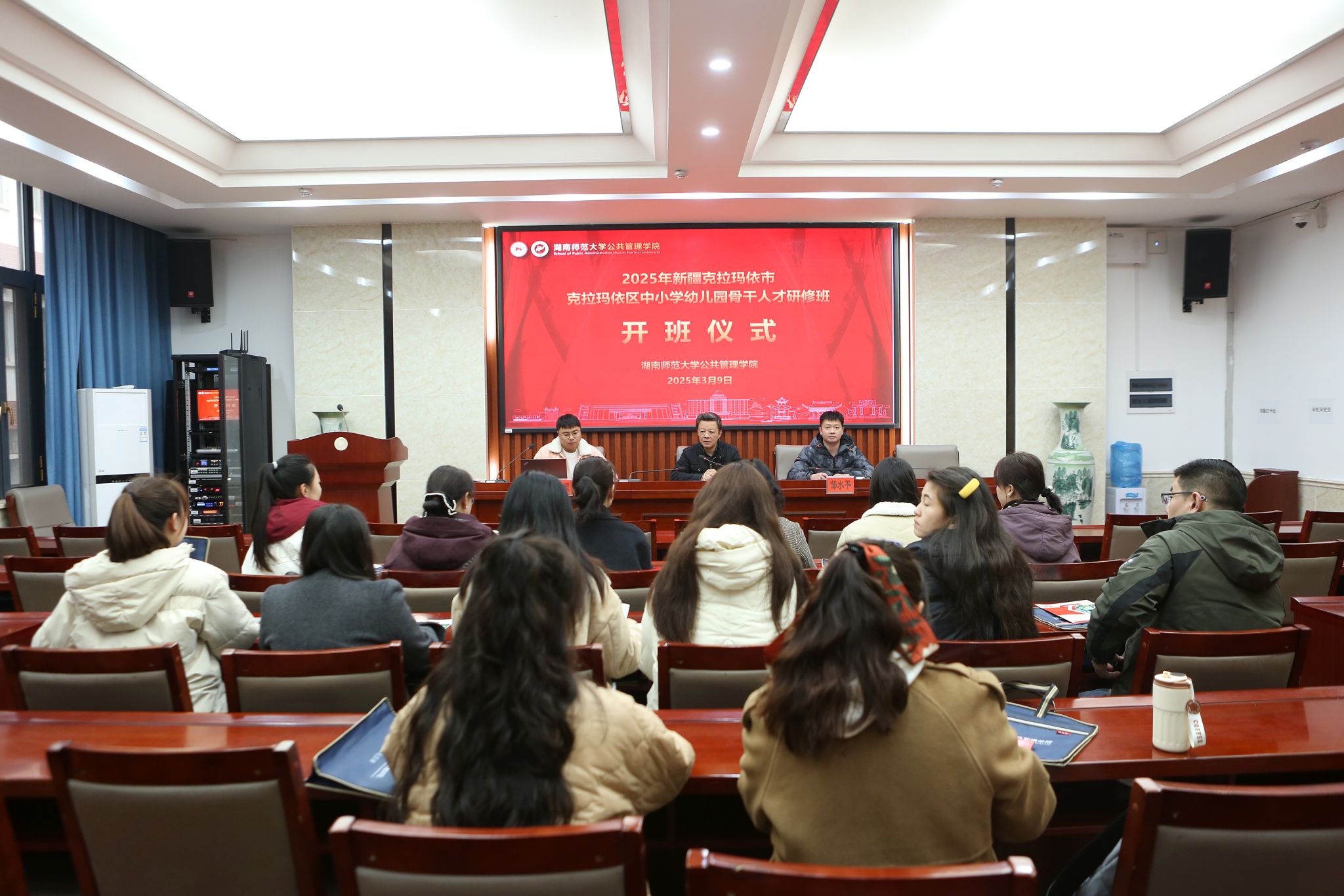 3月9日上午8时30分,由新疆克拉玛依市克拉玛依区教育局主办,我院承办的2025年新疆克拉玛依市克拉玛依区中小学幼儿园骨干人才研修班开班仪式在我院博后楼3楼报告厅举行。我院副院长胡雪松、培训中心主任邹水平出席了开班仪式。仪式由培训中心干事黄根主持。